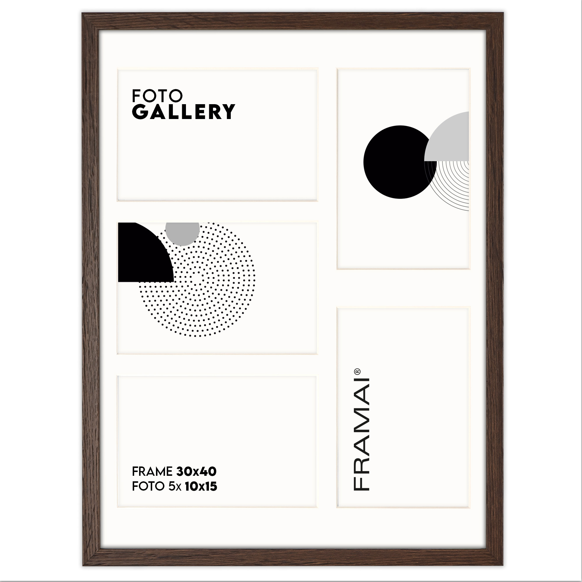 Foto Galeria 30x40 cm kolor brązowy - ramka z passe partout na 5 zdjęcia 10x15 cm