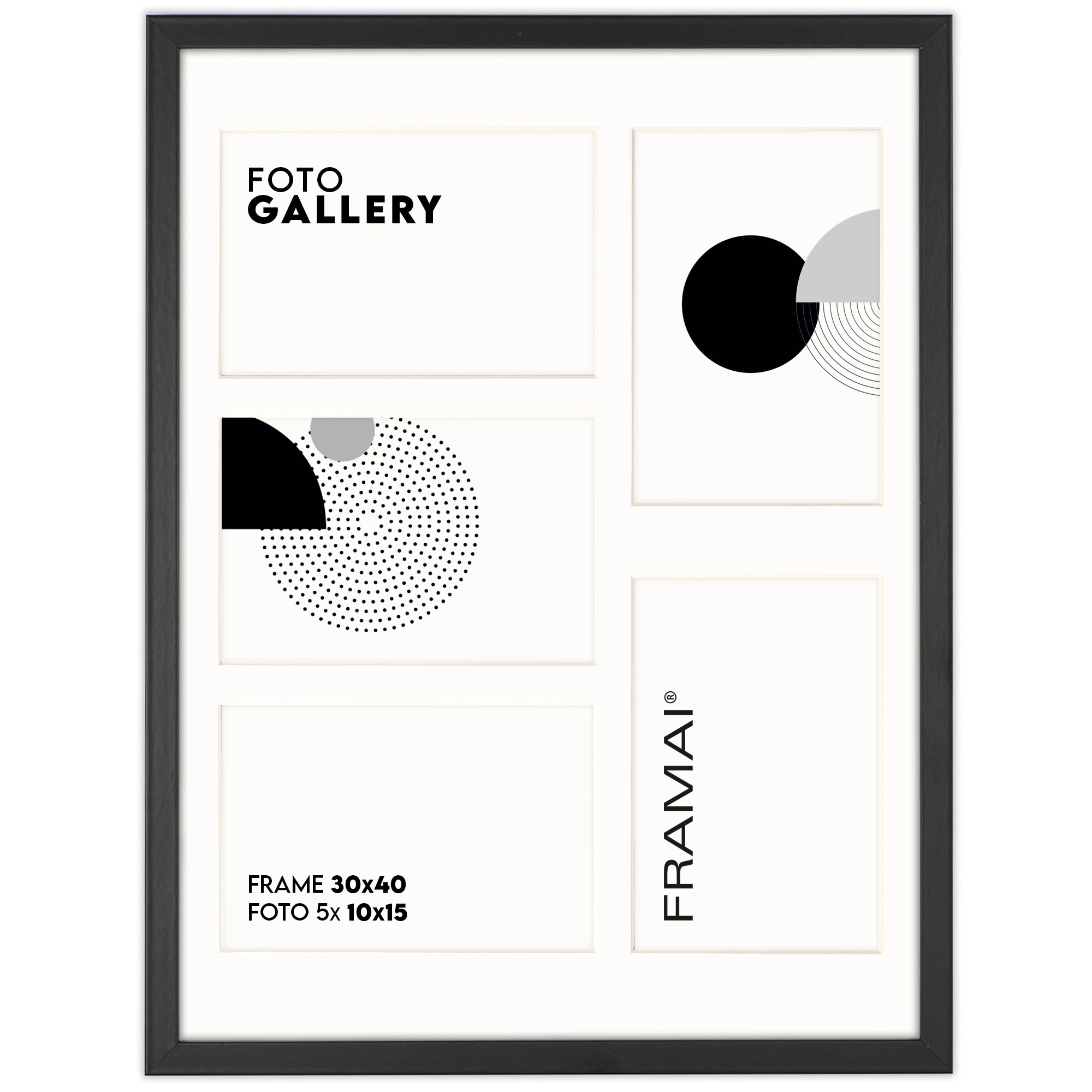 Foto Galeria 30x40 cm kolor czarny - ramka z passe partout na 5 zdjęcia 10x15 cm