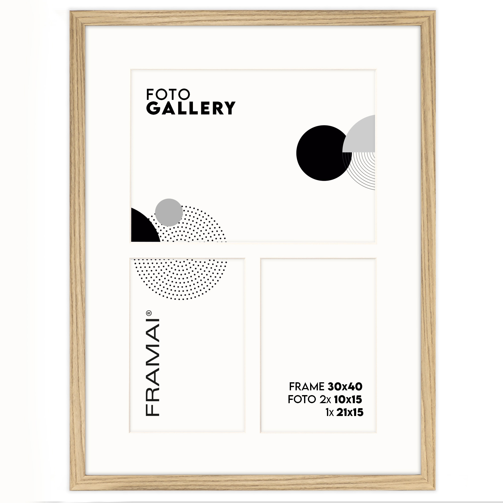 Foto Galeria 30x40 cm kolor dębowy - ramka z passe partout na 3 zdjęcia 10x15 cm 15x21 cm