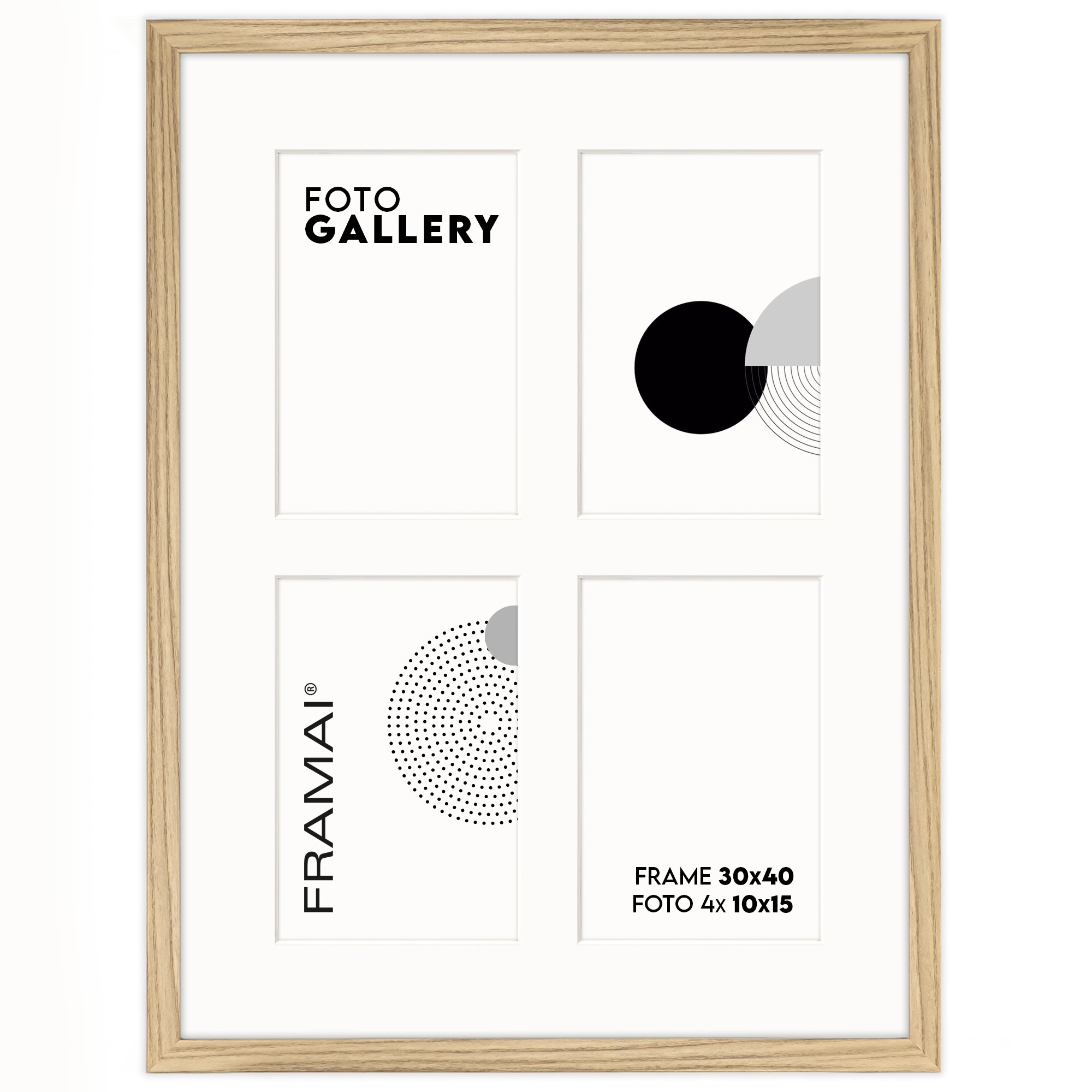 Foto Galeria 30x40 cm kolor dębowy - ramka z passe partout na 4 zdjęcia 10x15 cm