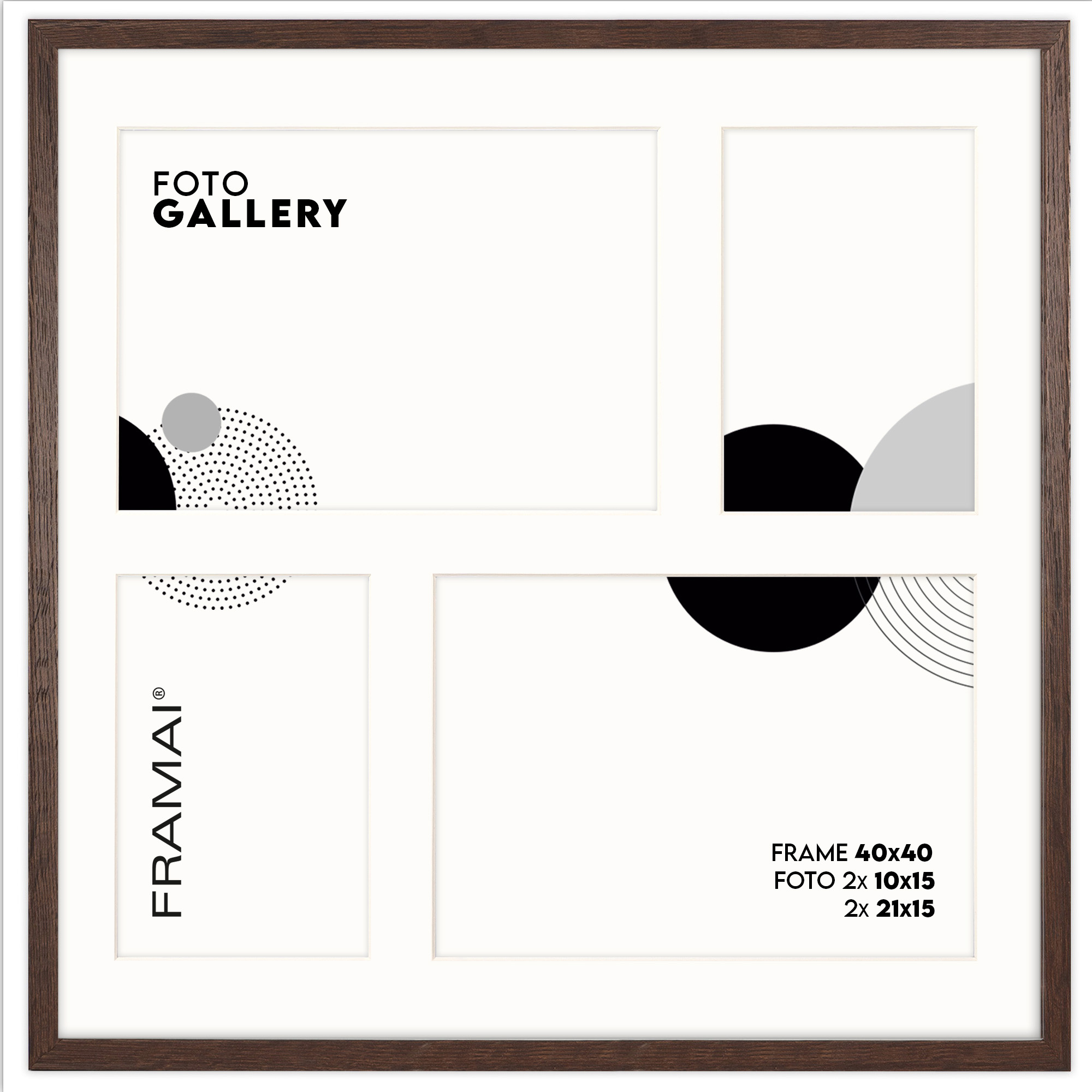Foto Galeria 40x40 cm kolor brązowym - ramka z passe partout na 4 zdjęcia 10x15 cm i 15x21 cm