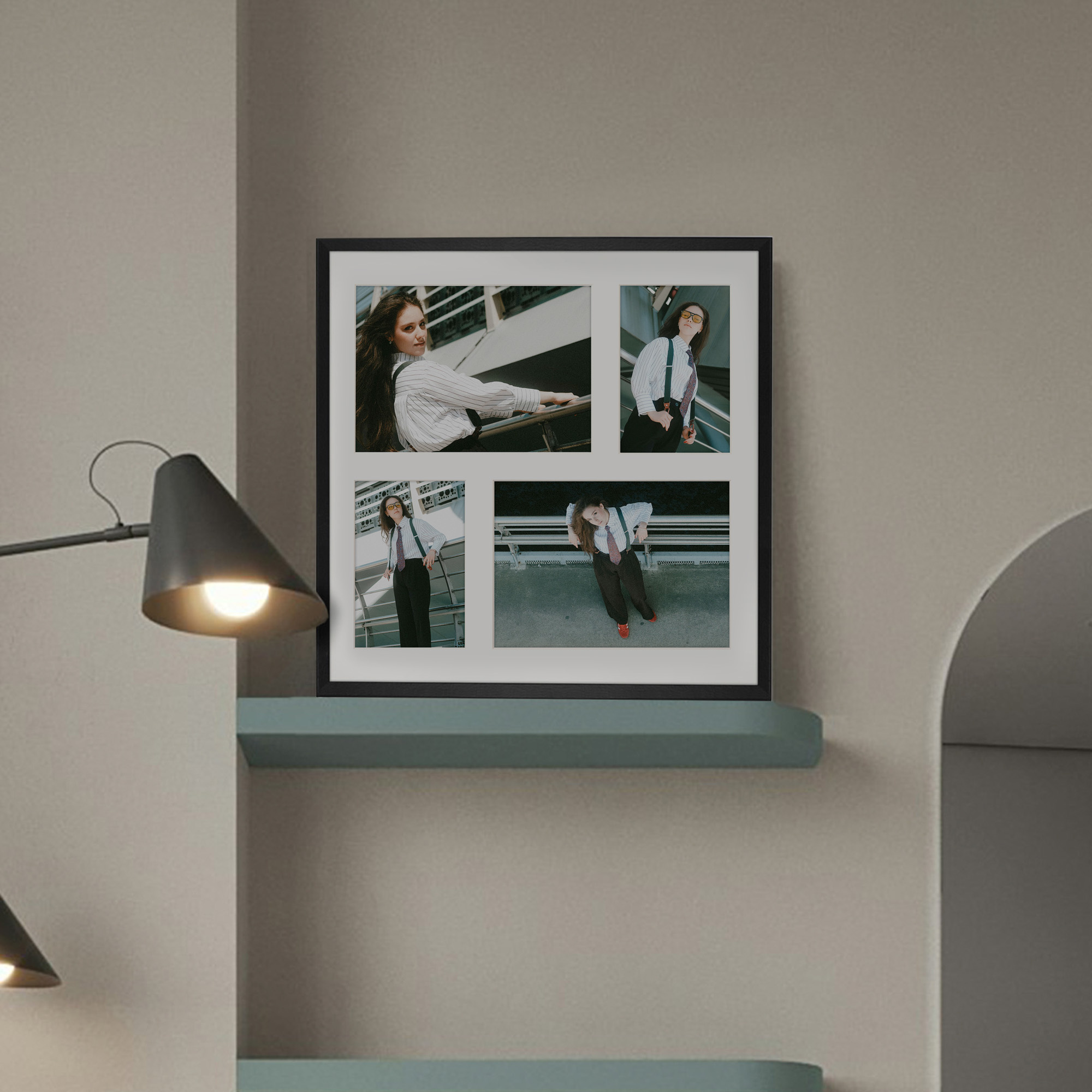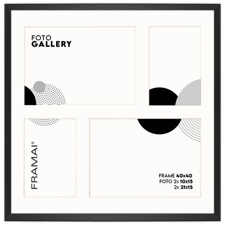 Foto Galeria 40x40 cm kolor czarny - ramka z passe partout na 4 zdjęcia 10x15 cm i 15x21 cm