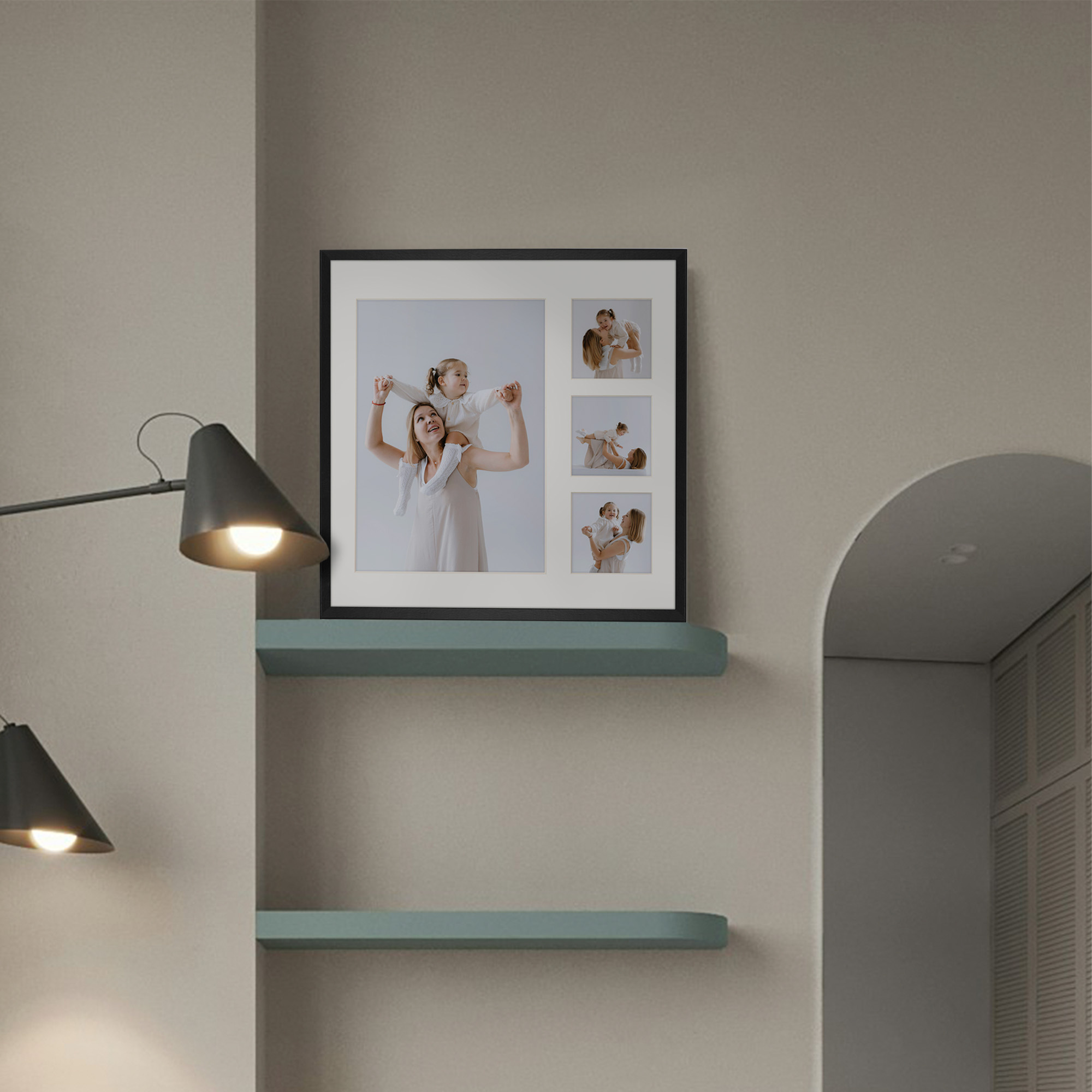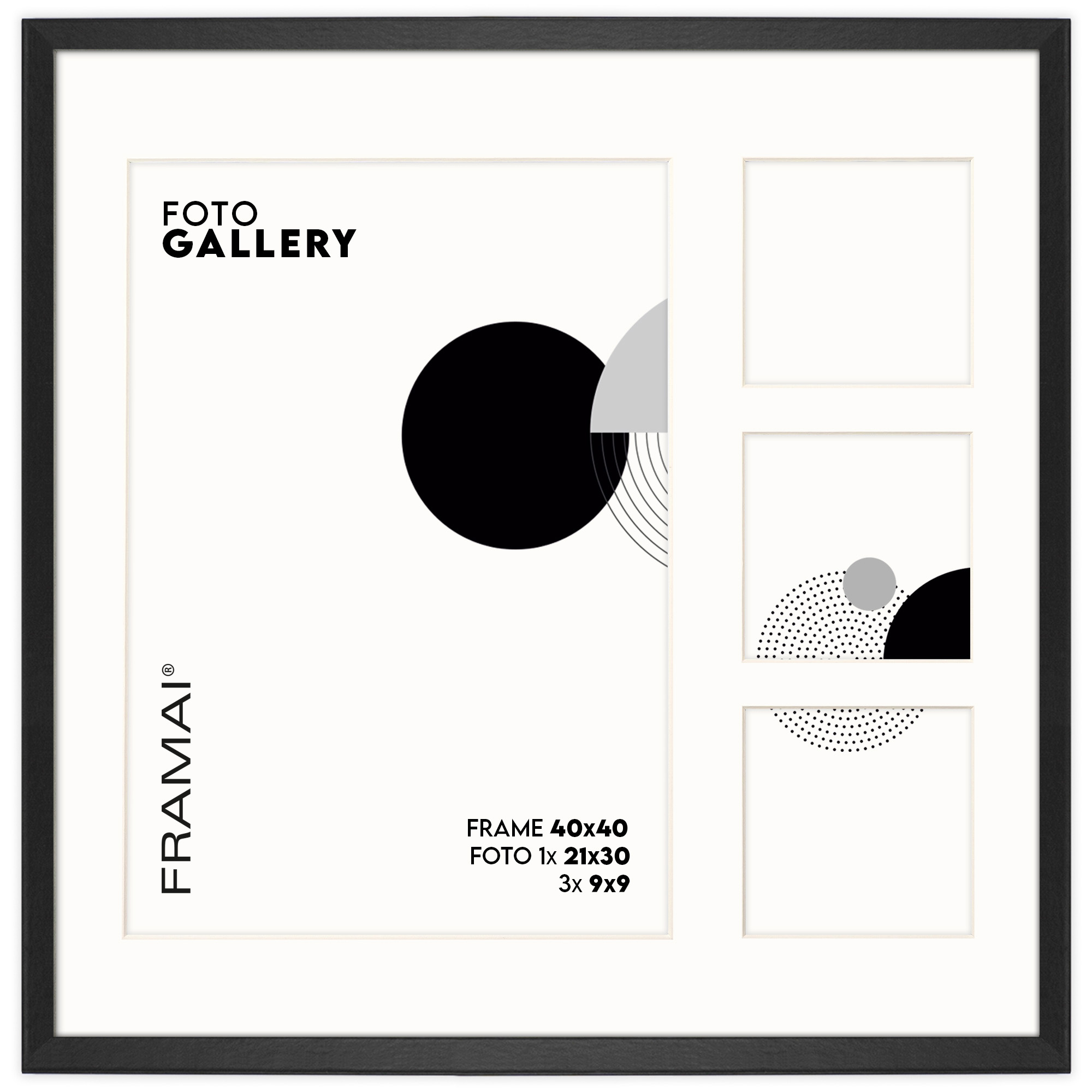 Foto Galeria 40x40 cm kolor czarny - ramka z passe partout na 4 zdjęcia 21x30 cm i 9x9 cm