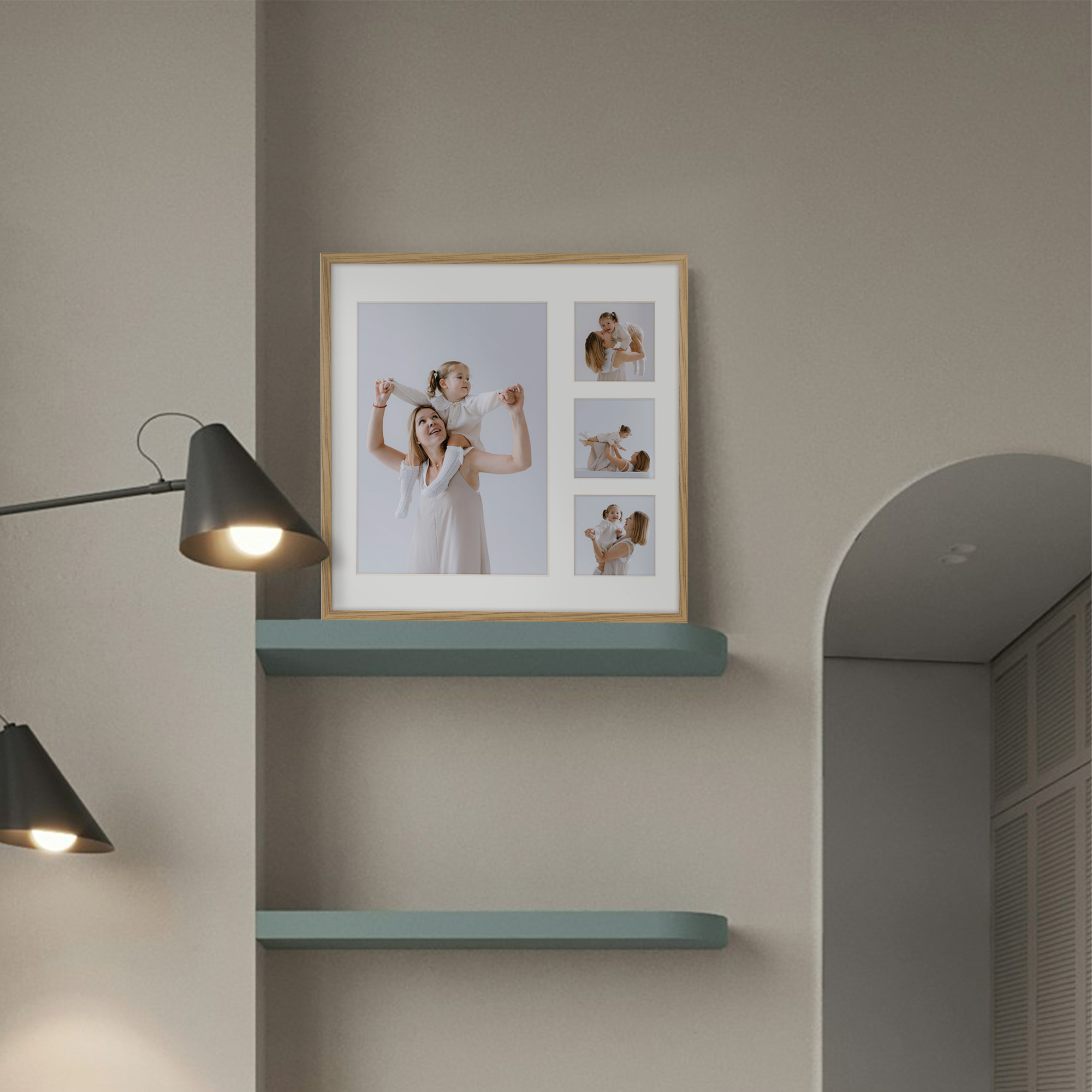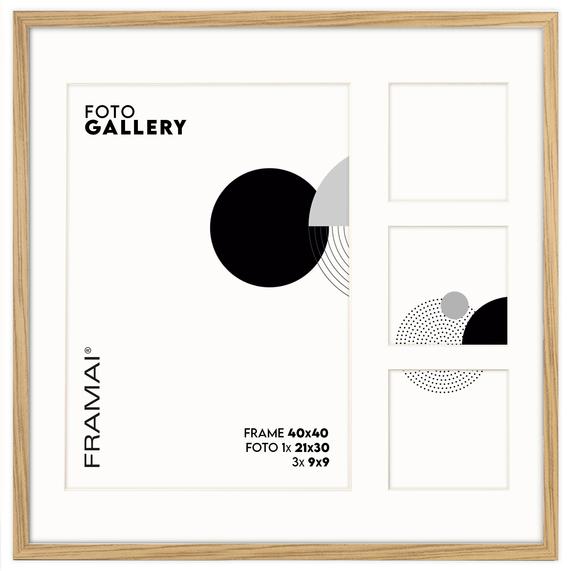 Foto Galeria 40x40 cm kolor dębowy - ramka z passe partout na 4 zdjęcia 21x30 cm i 9x9 cm