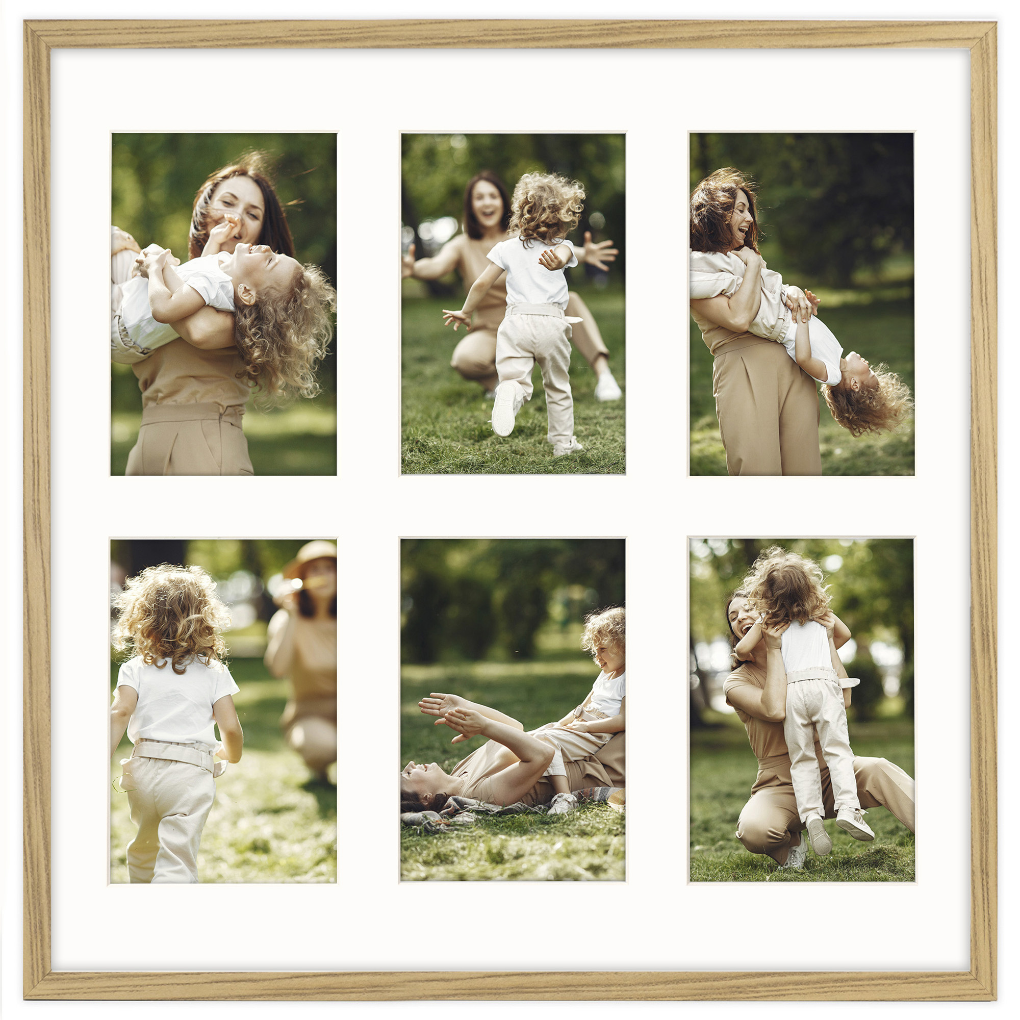 Foto Galeria 40x40 cm - ramka z passe partout na 6 zdjęć 10x15 cm kolor dębowy