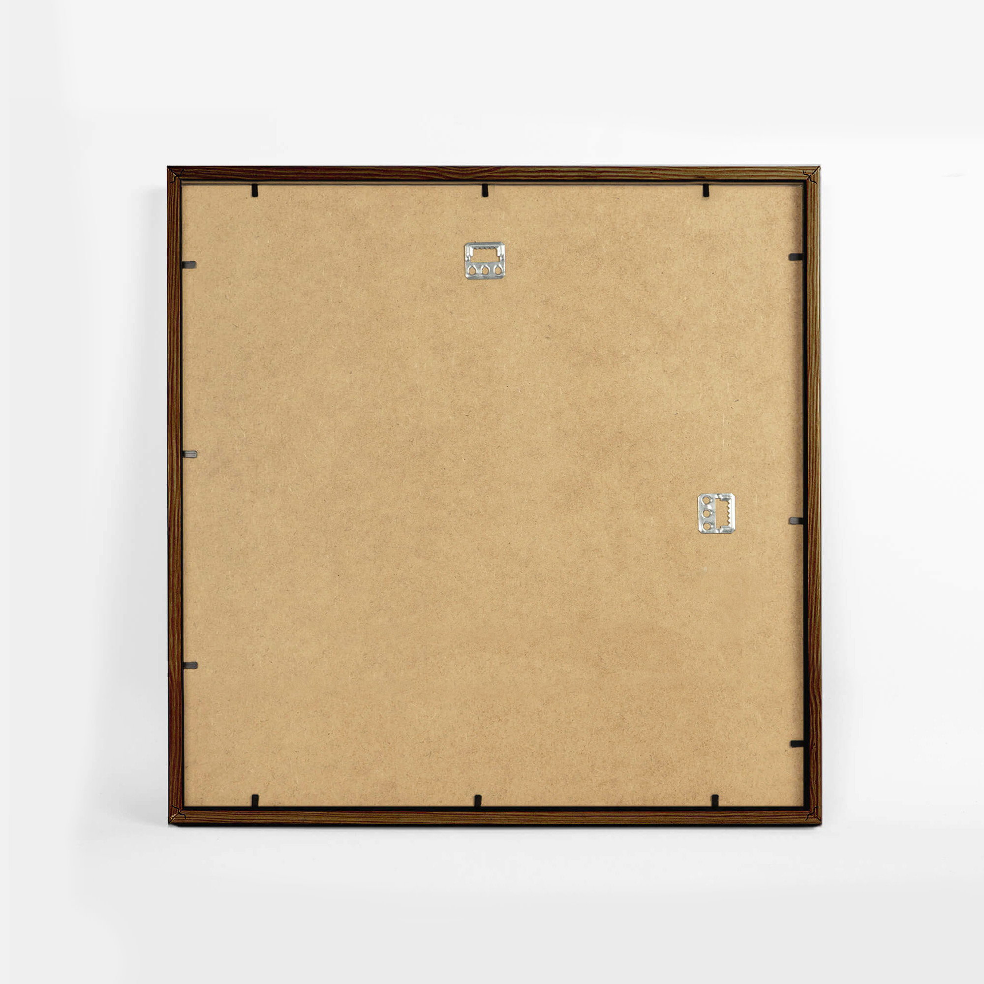Foto Galeria z Passe Partout kolor brązowy wykonana jest z ekologicznego MDF o profilu 13 mm (szerokość) i 20 mm (wysokość). Z przodu chroniona jest szkłem organicznym - plexi, a z tyłu twardą płytą HDF. Elastyczne blaszki pozwalają na wielokrotne otwieranie i wymienianie zdjęć. Foto galerię można powiesić na ścianie zarówno w pionie i poziomie.