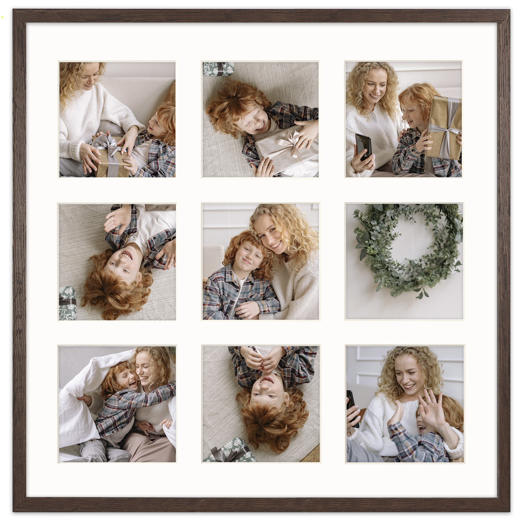 Foto Galeria 40x40 cm - ramka z passe partout na 9 zdjęć 10x10 cm kolor brązowy