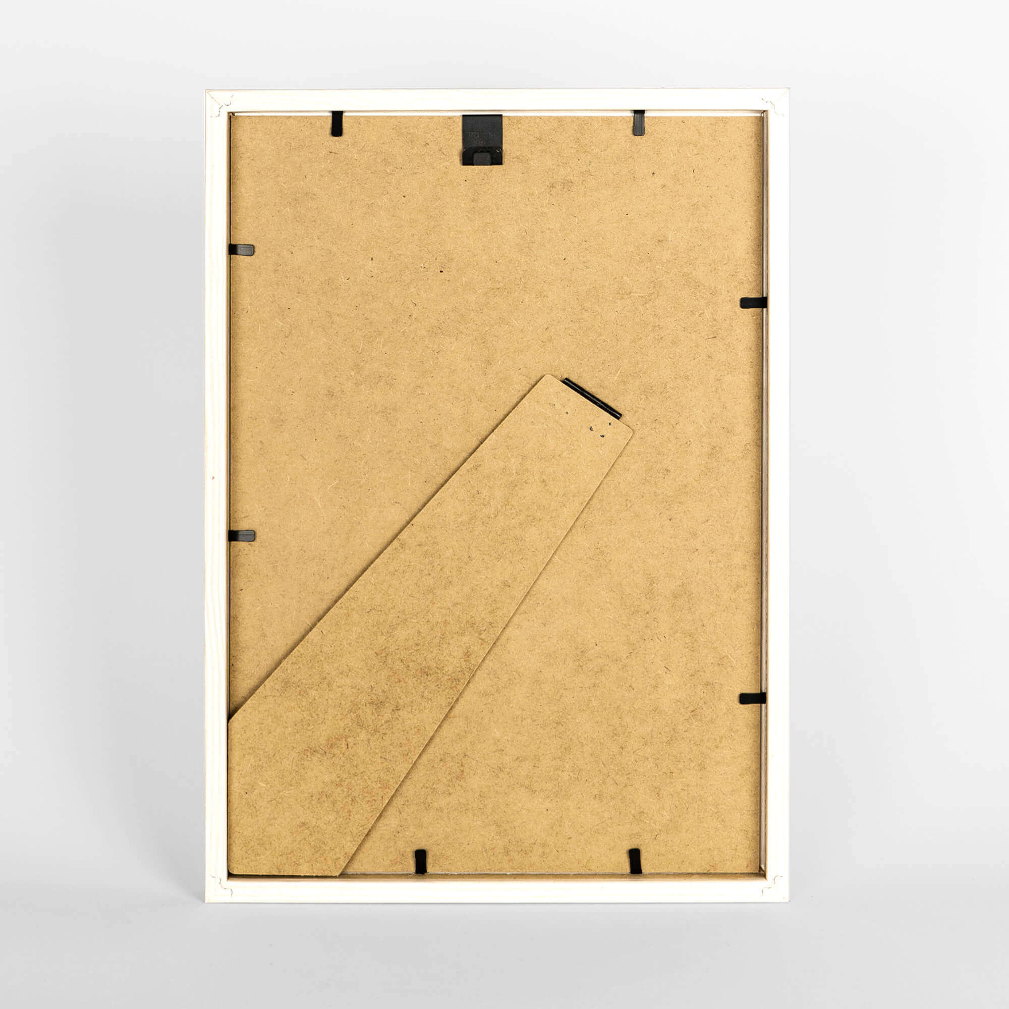 Foto Galeria z Passe Partout biała wykonana jest z ekologicznego MDF o profilu 13 mm (szerokość) i 20 mm (wysokość). Z przodu chroniona jest szkłem organicznym - plexi, a z tyłu twardą płytą HDF. Elastyczne blaszki pozwalają na wielokrotne otwieranie i wymienianie zdjęć. Foto galerię można powiesić na ścianie zarówno w pionie i poziomie, można ją również postawić na płaskiej powierzchni, dzięki zamontowanej stopce.