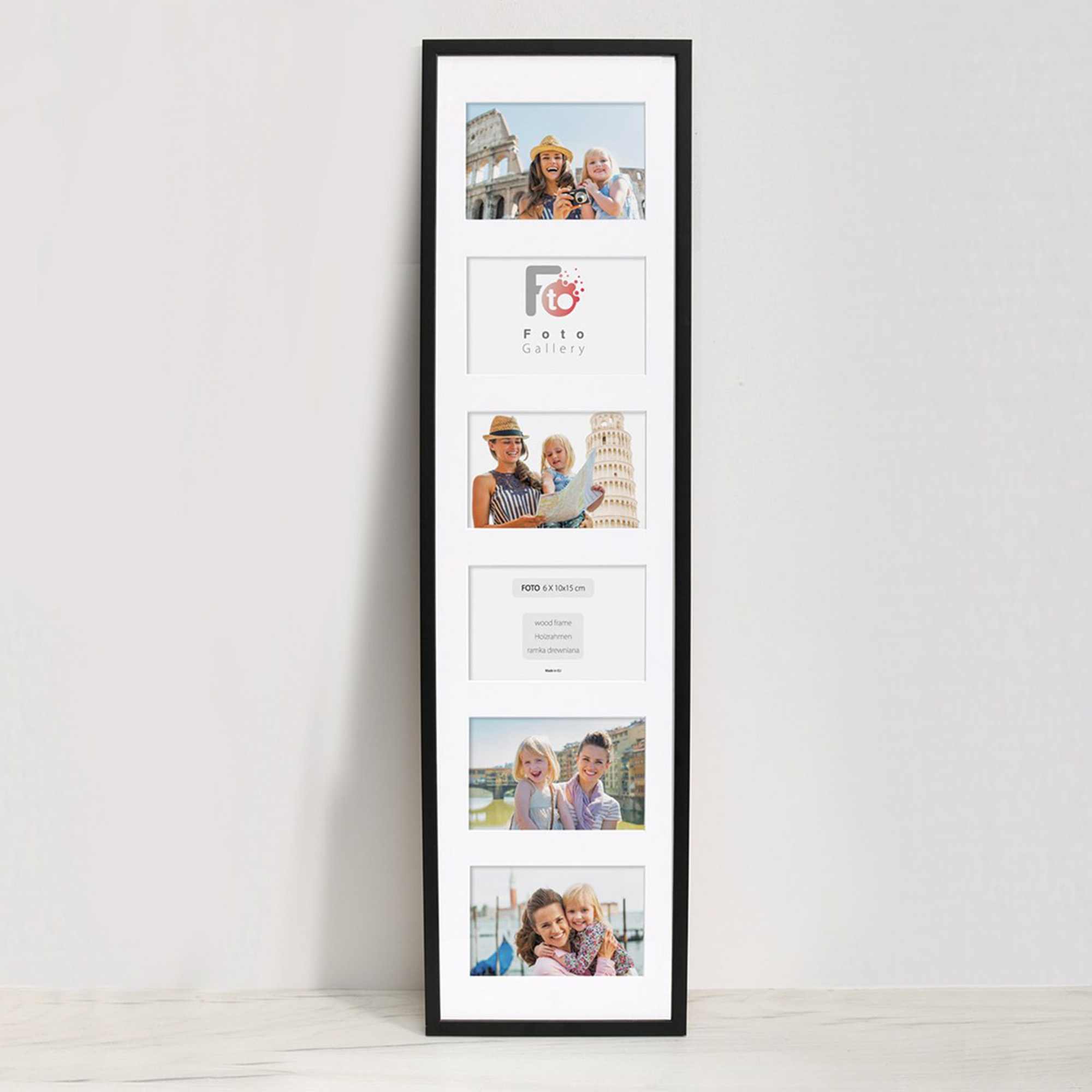 • Foto galeria Black - drewniana ramka z passe partout do oprawy zdjęć 6 x 10x15 cm. Wymiar wewnętrzny kompozycji 20x80 cm.