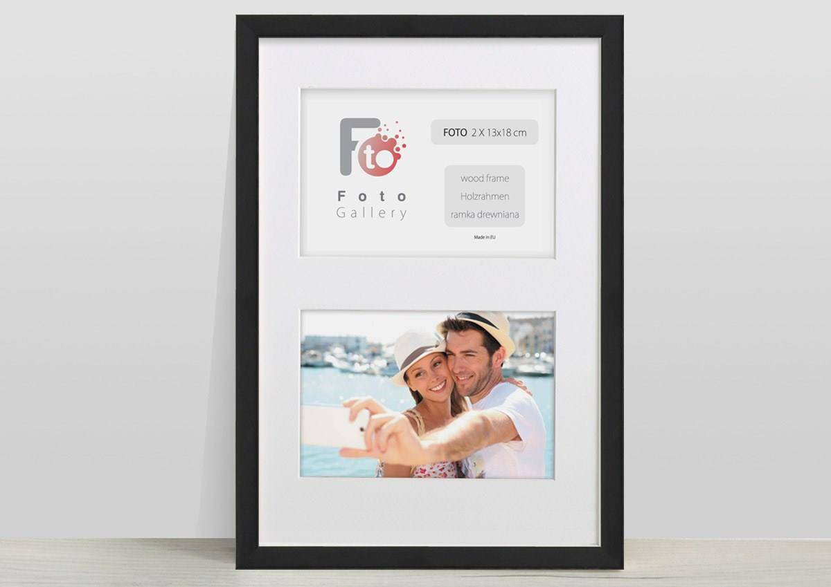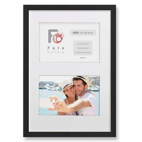 - Foto galeria Black - drewniana ramka z passe partout do oprawy zdjęć 2 x 13x18cm. Wymiar wewnętrzny kompozycji 23x35 cm.