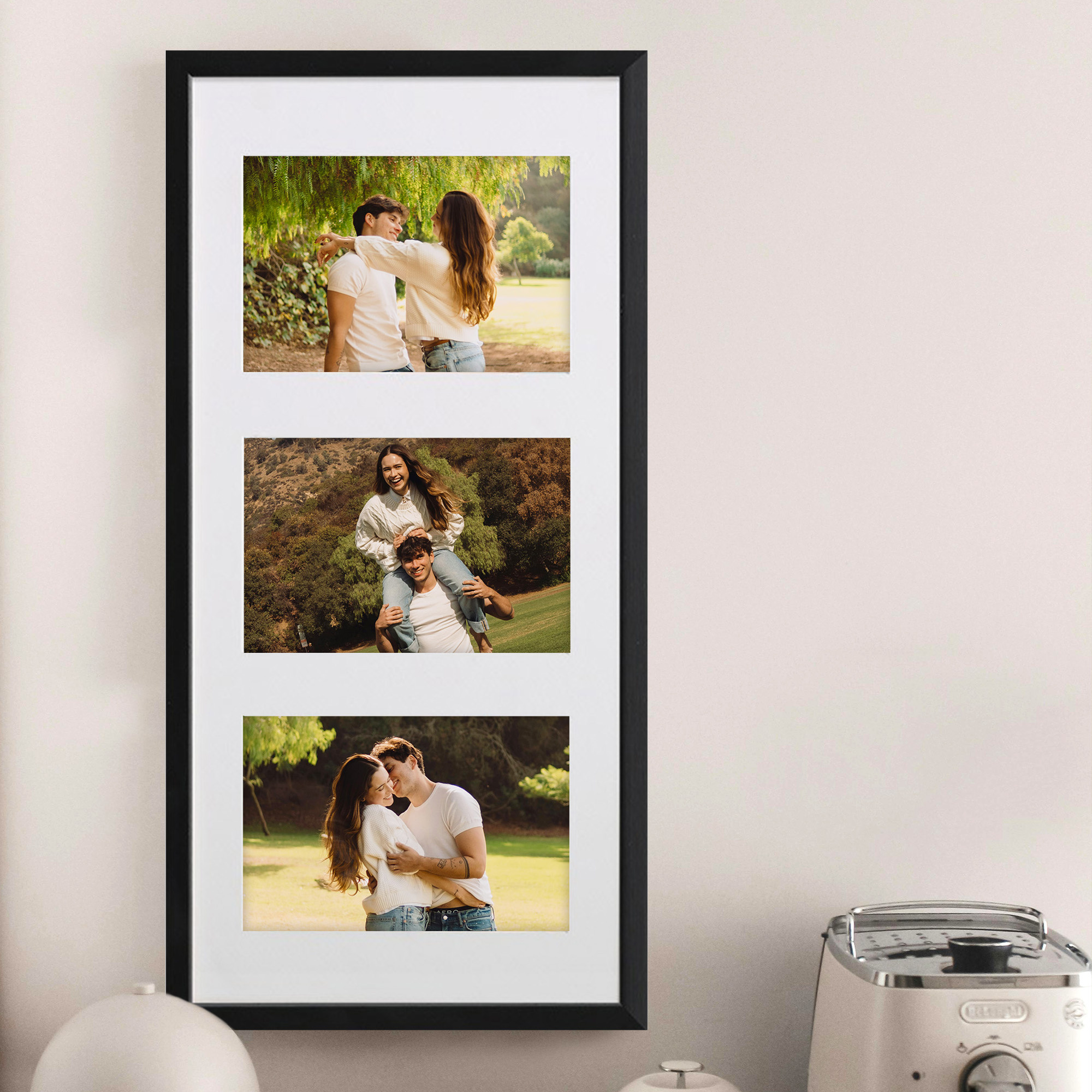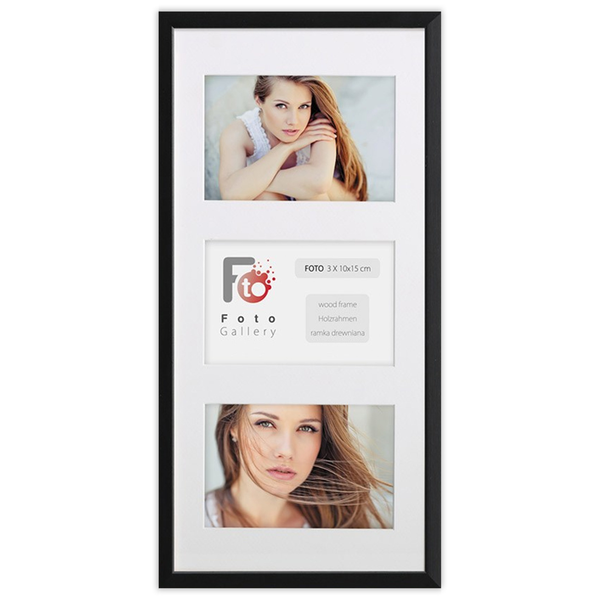 - Foto galeria Black - drewniana ramka z passe partout do oprawy zdjęć 3 x 13x18cm. Wymiar wewnętrzny kompozycji 23x50 cm.
