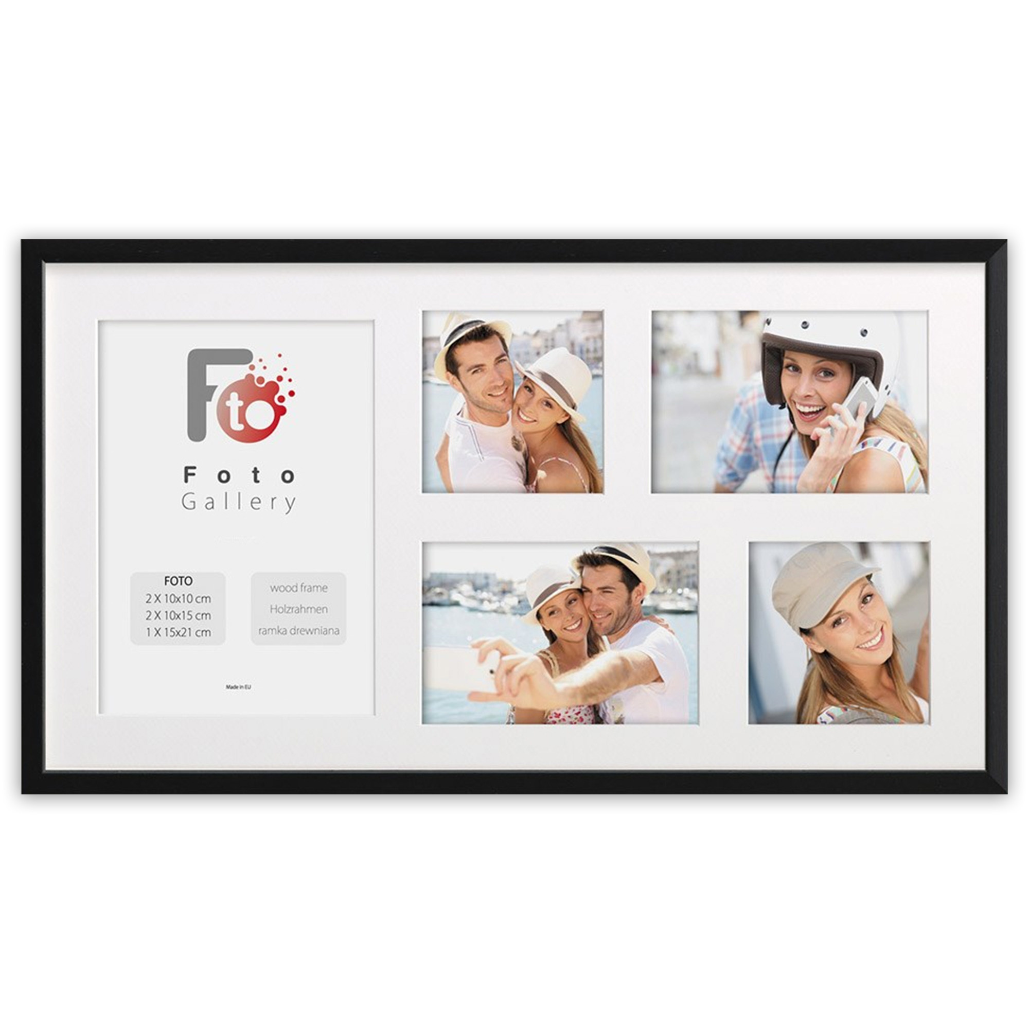 • Foto galeria Black - drewniana ramka z passe partout do oprawy zdjęć 1 x 15x21, 2 x 10x15, 2 x 10x10 cm. Wymiar wewnętrzny kompozycji 27x50 cm.
