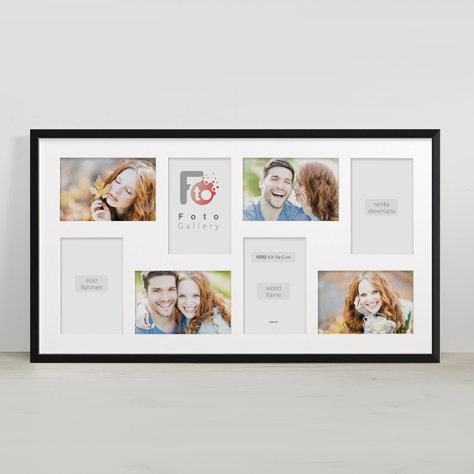 - Foto galeria Black - drewniana ramka z passe partout do oprawy zdjęć 8x 10x15 cm. Wymiar wewnętrzny kompozycji 33x60 cm.