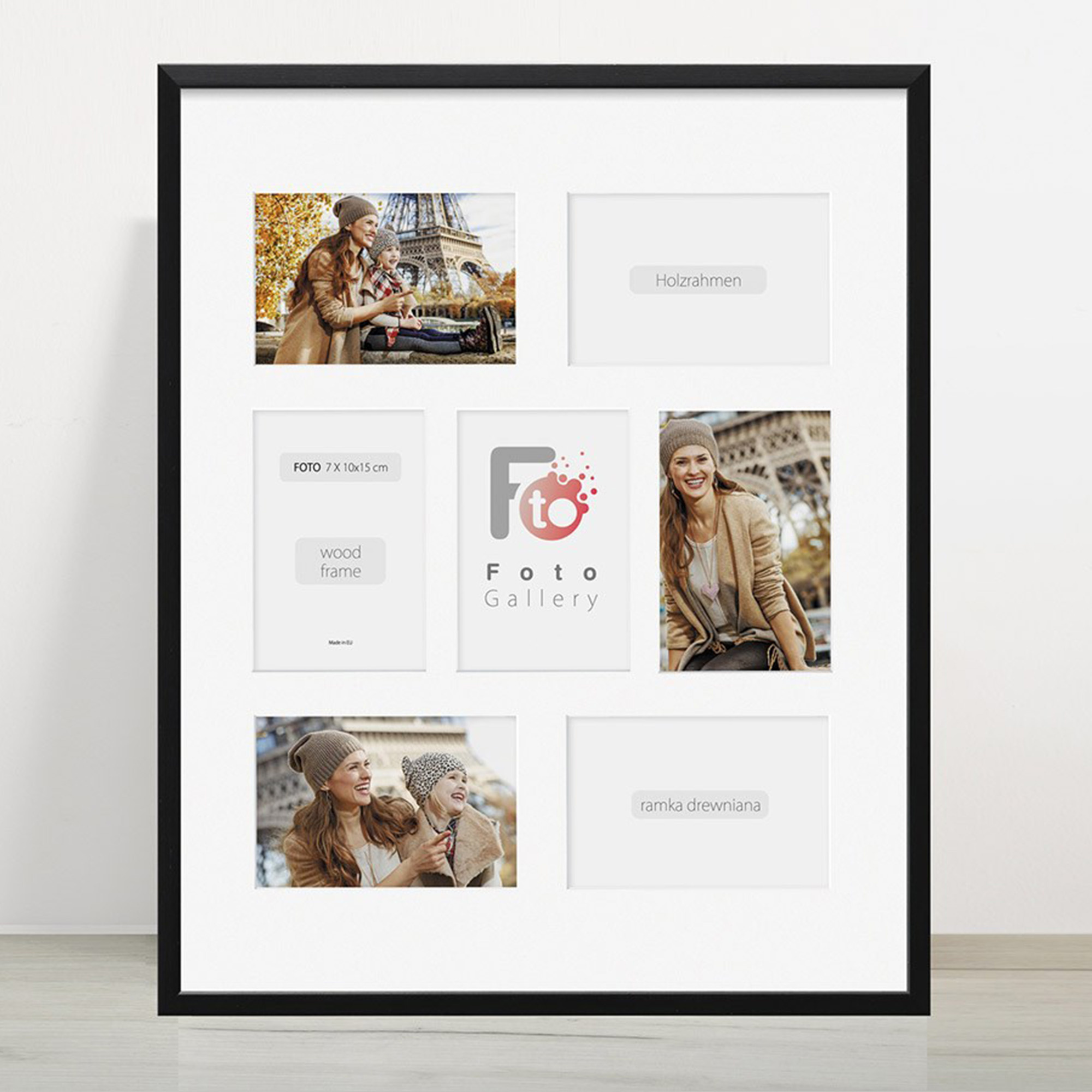 • Foto galeria Black - drewniana ramka z passe partout do oprawy zdjęć 7 x 10x15 cm. Wymiar wewnętrzny kompozycji 40x50 B cm.