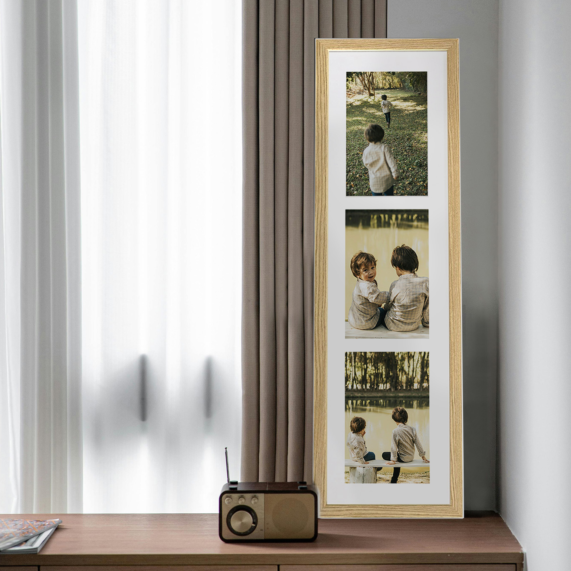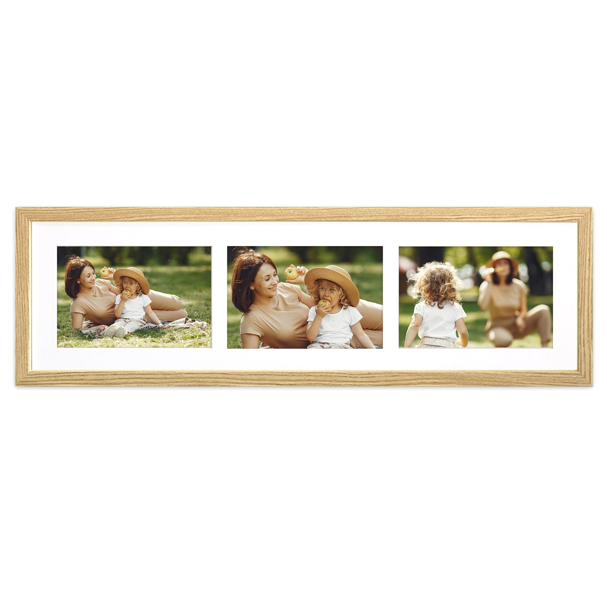 - Foto galeria Natural - drewniana ramka z passe partout do oprawy zdjęć 3 x 10x15 cm. Wymiar wewnętrzny kompozycji 15x52 cm.