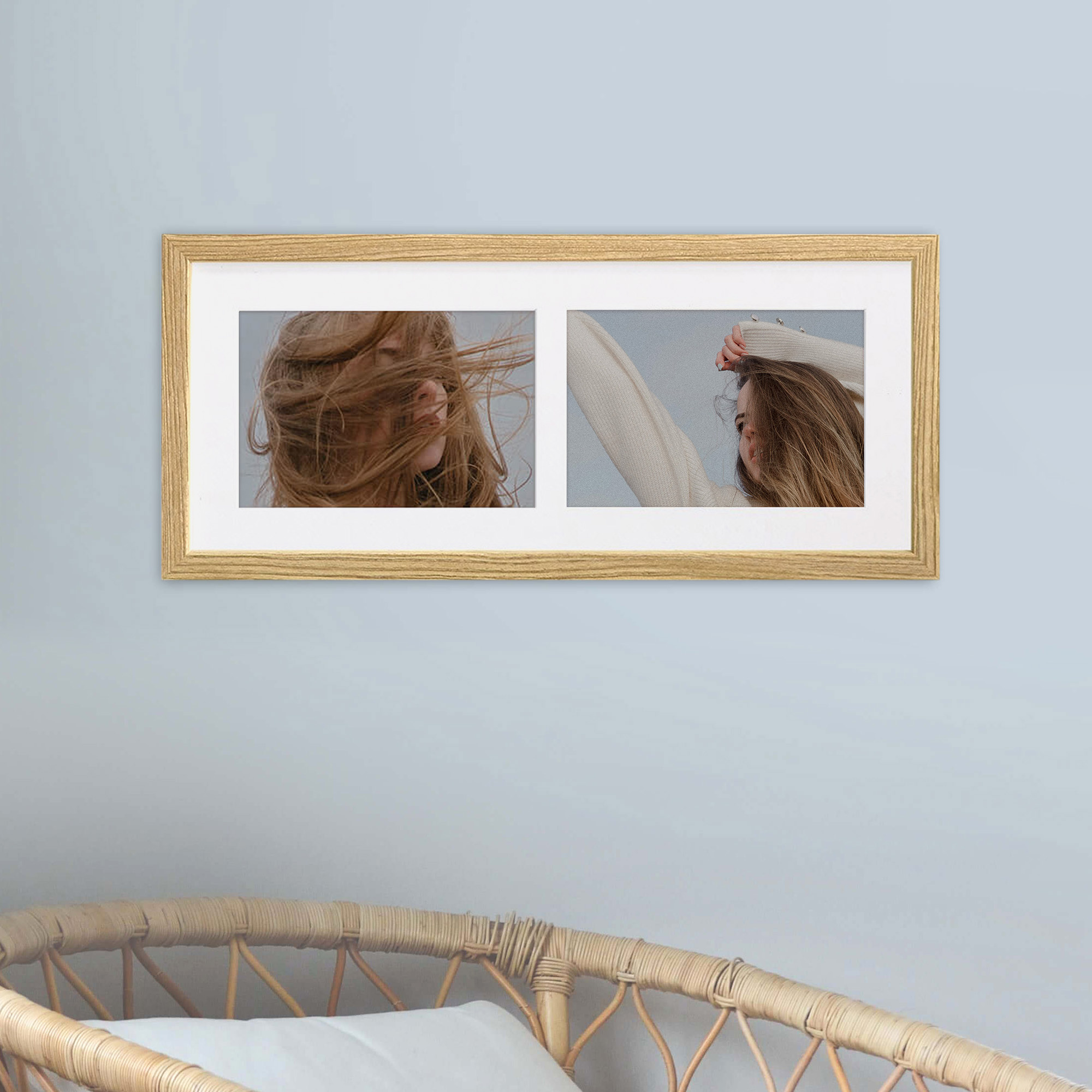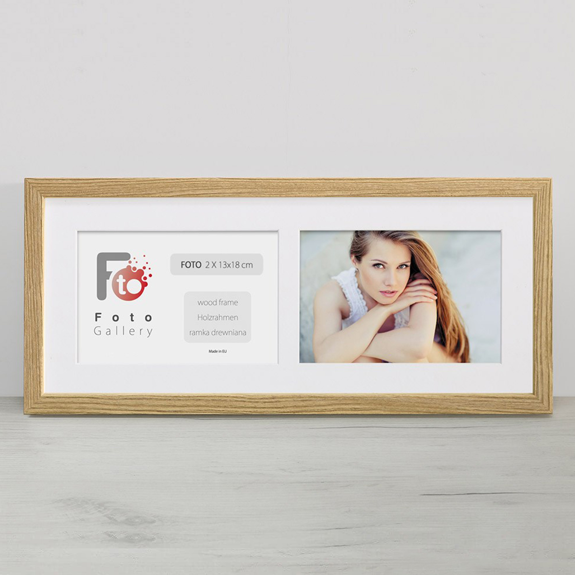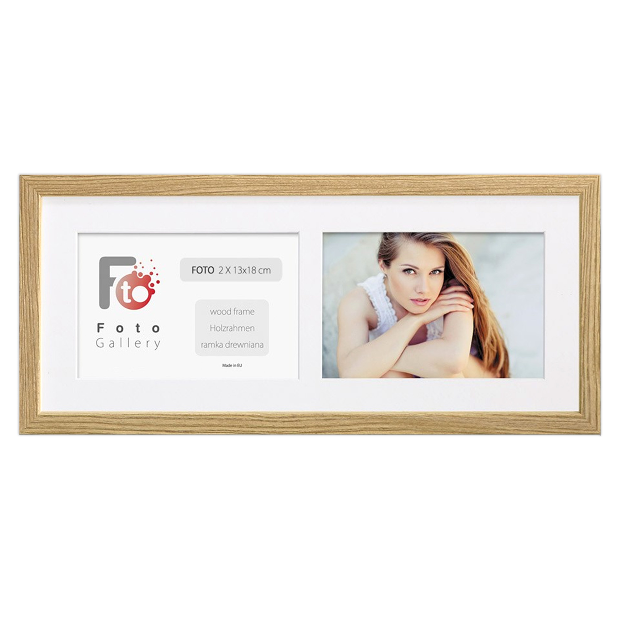 • Foto galeria Natural - drewniana ramka z passe partout do oprawy zdjęć 2 x 13x18cm. Wymiar wewnętrzny kompozycji 18x45 cm.