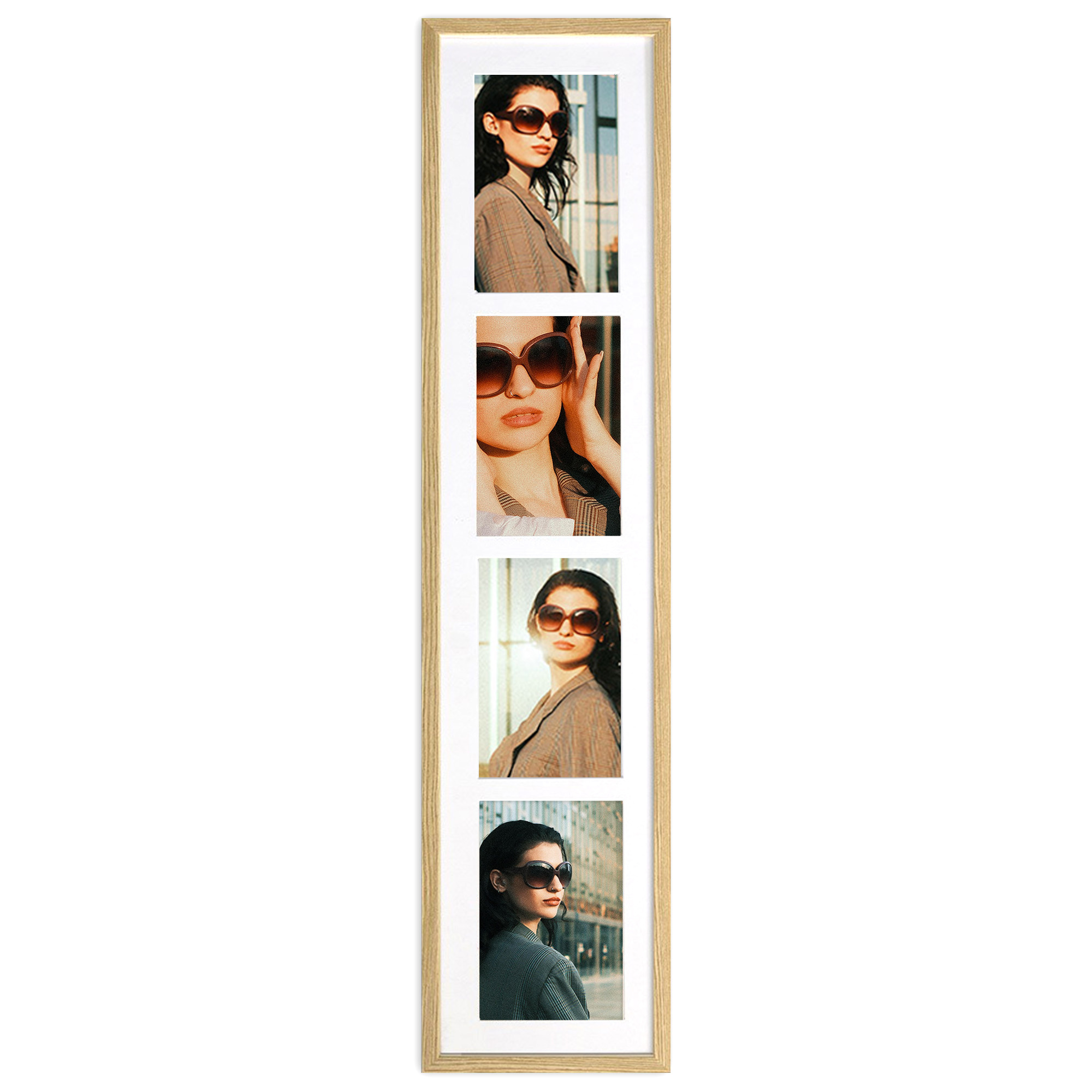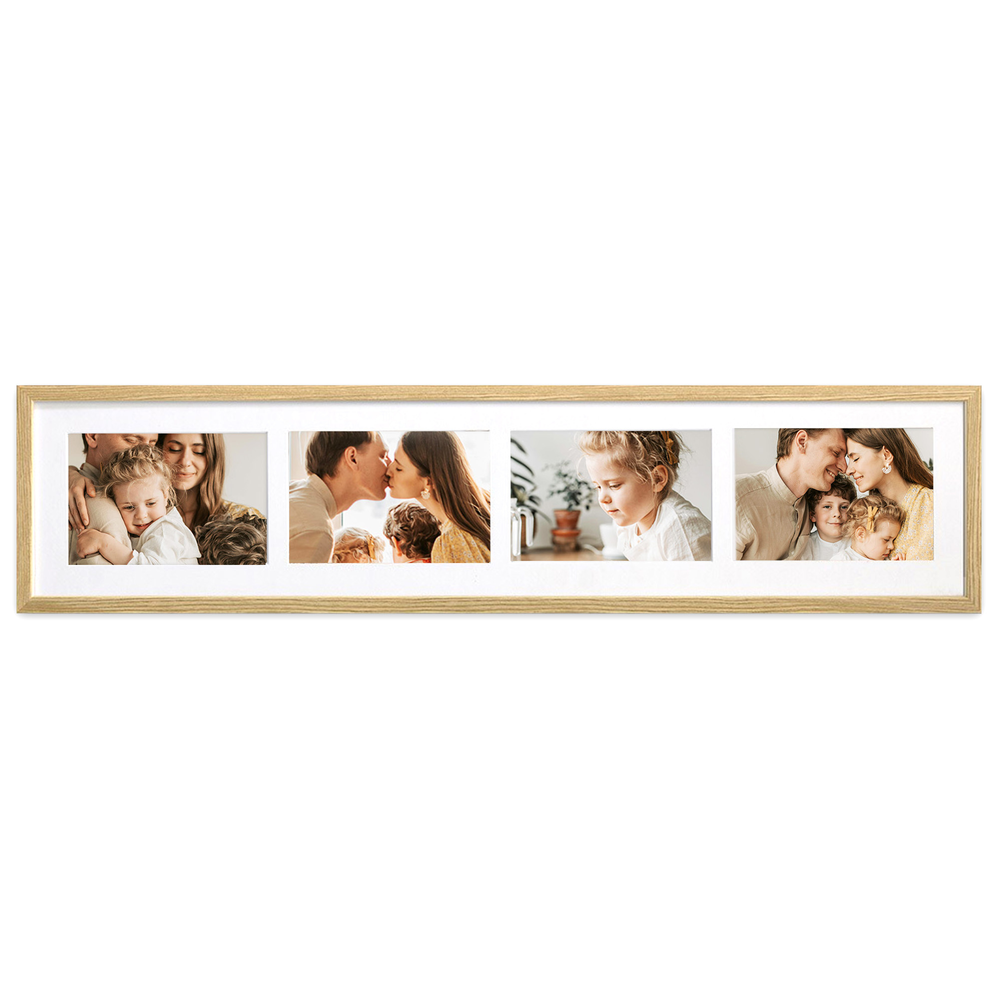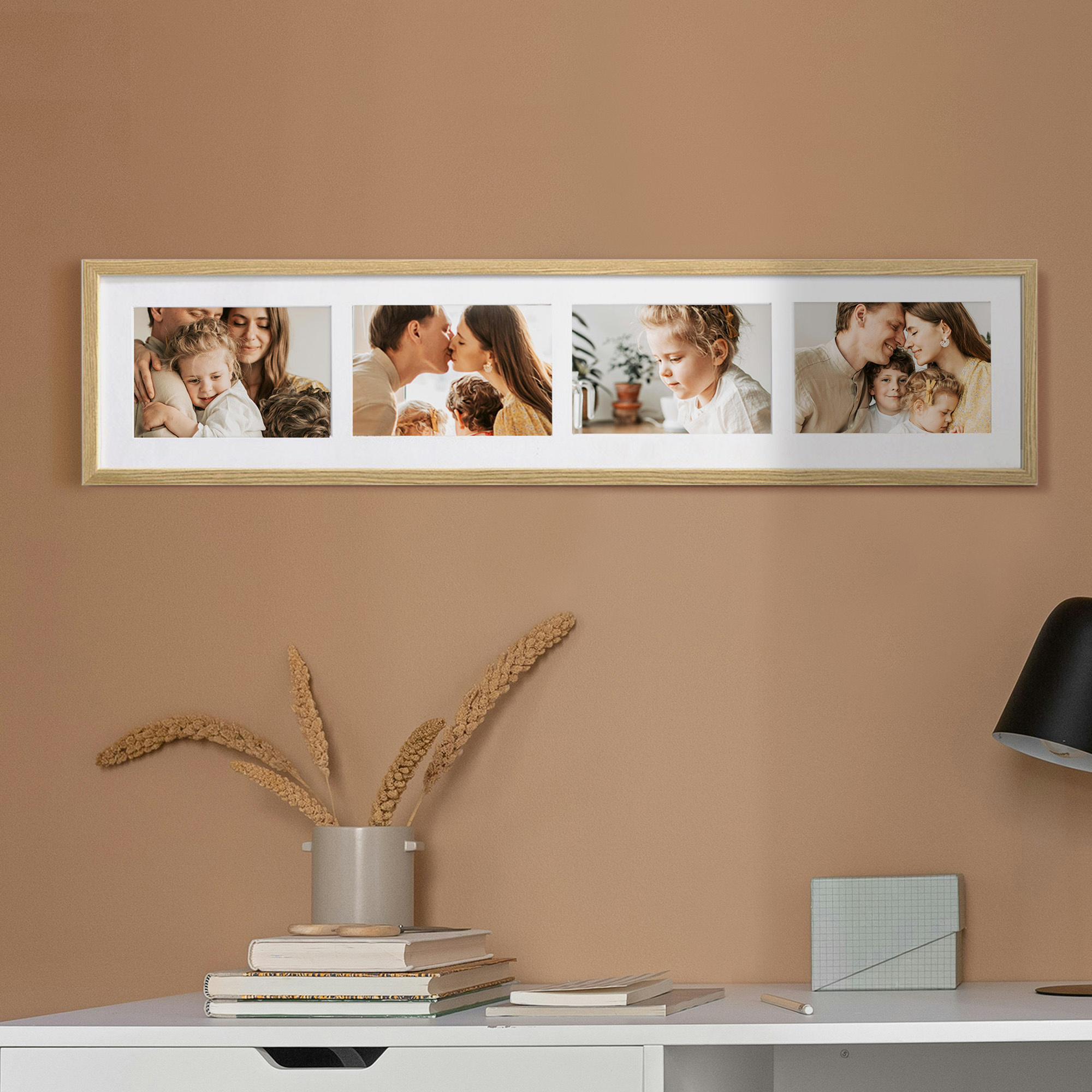 - Foto galeria Natural - drewniana ramka z passe partout do oprawy zdjęć 4 x 13x18cm. Wymiar wewnętrzny kompozycji 18x86 cm.