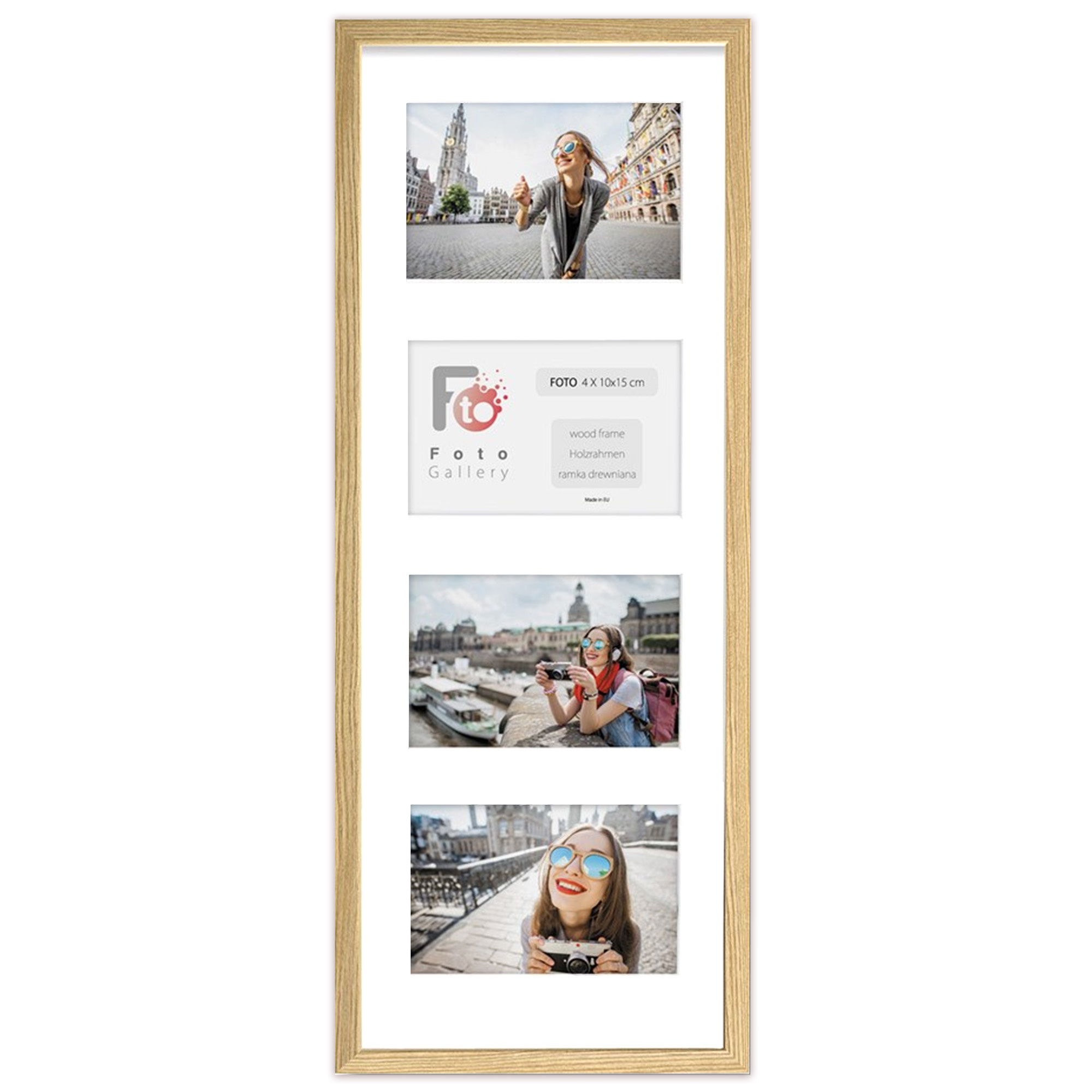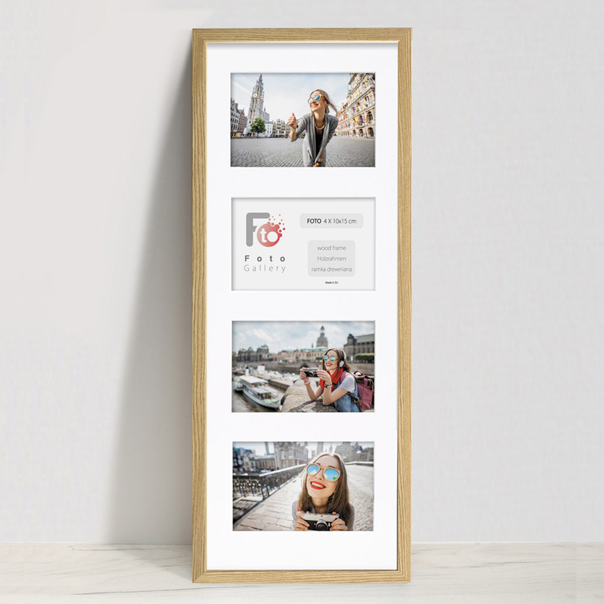 • Foto galeria Natural - drewniana ramka z passe partout do oprawy zdjęć 4 x 10x15 cm. Wymiar wewnętrzny kompozycji 20x55 cm.