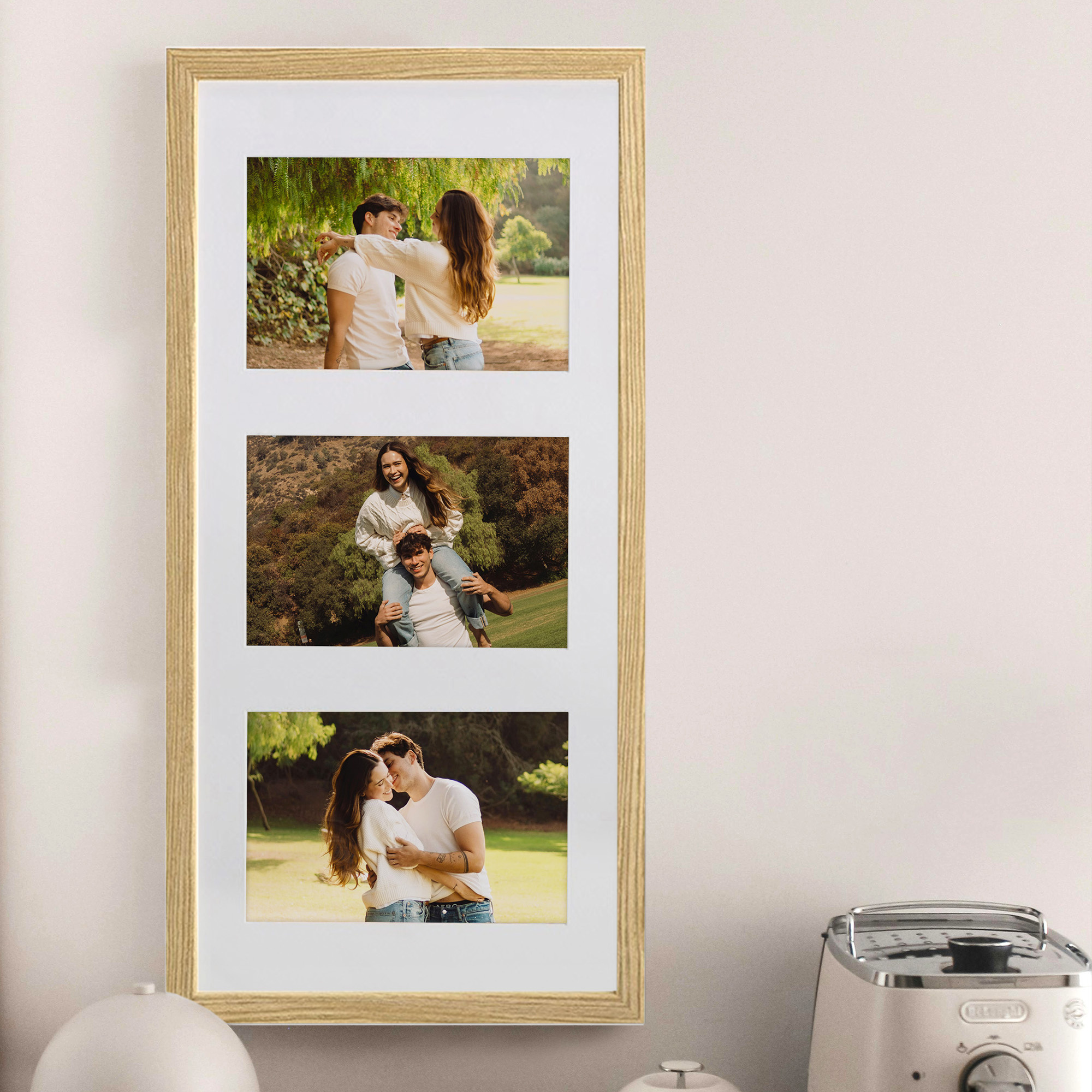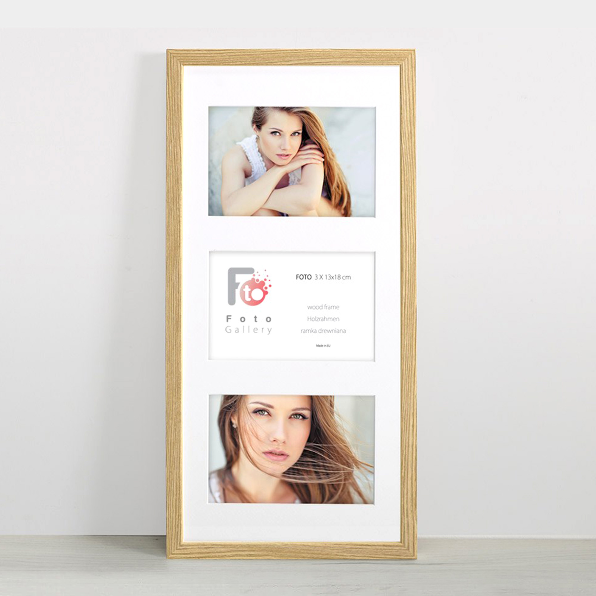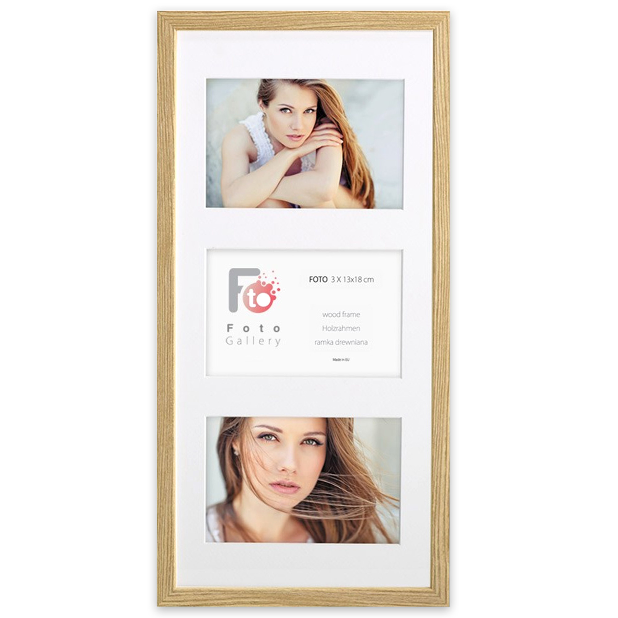 - Foto galeria Natural - drewniana ramka z passe partout do oprawy zdjęć 3 x 13x18cm. Wymiar wewnętrzny kompozycji 23x50 cm.