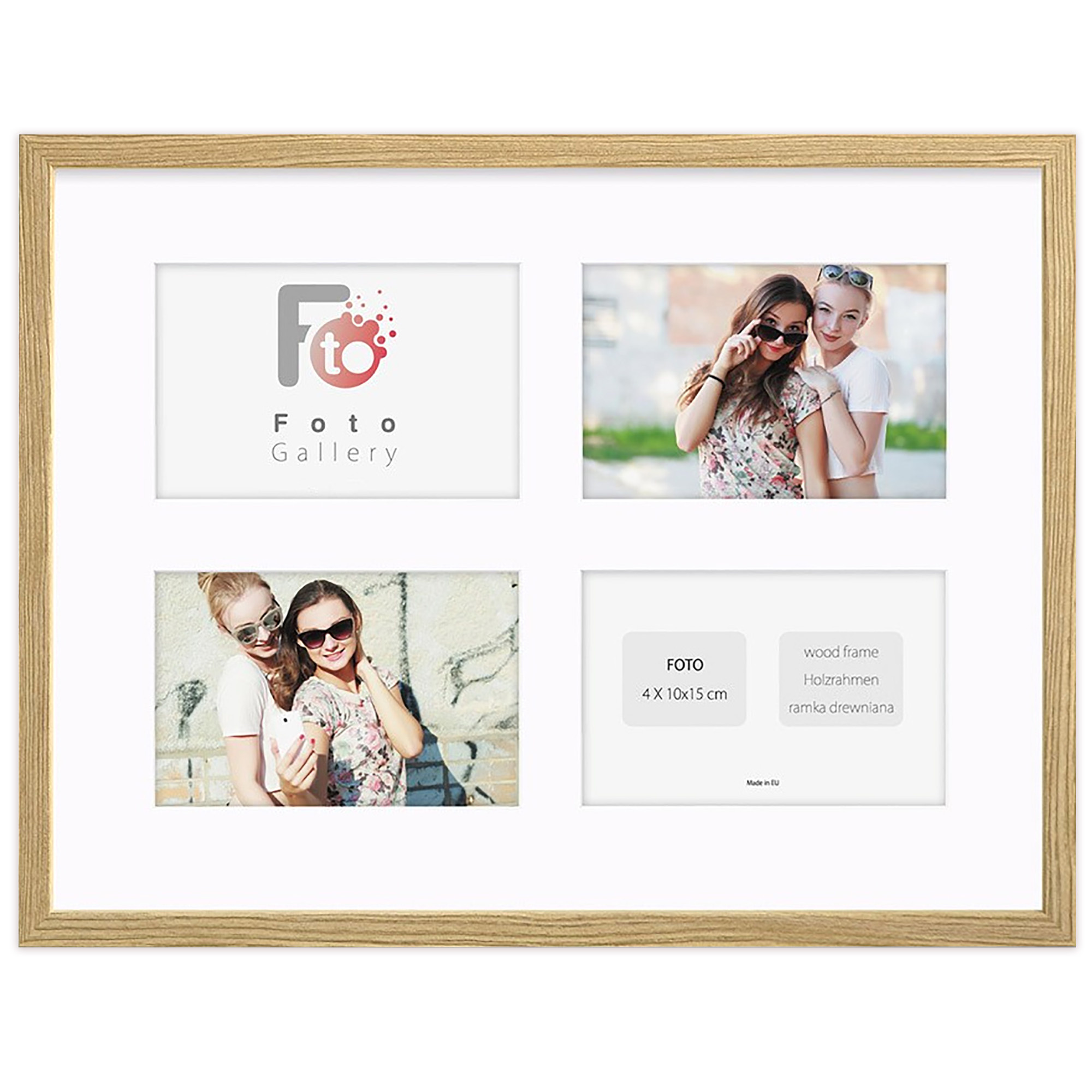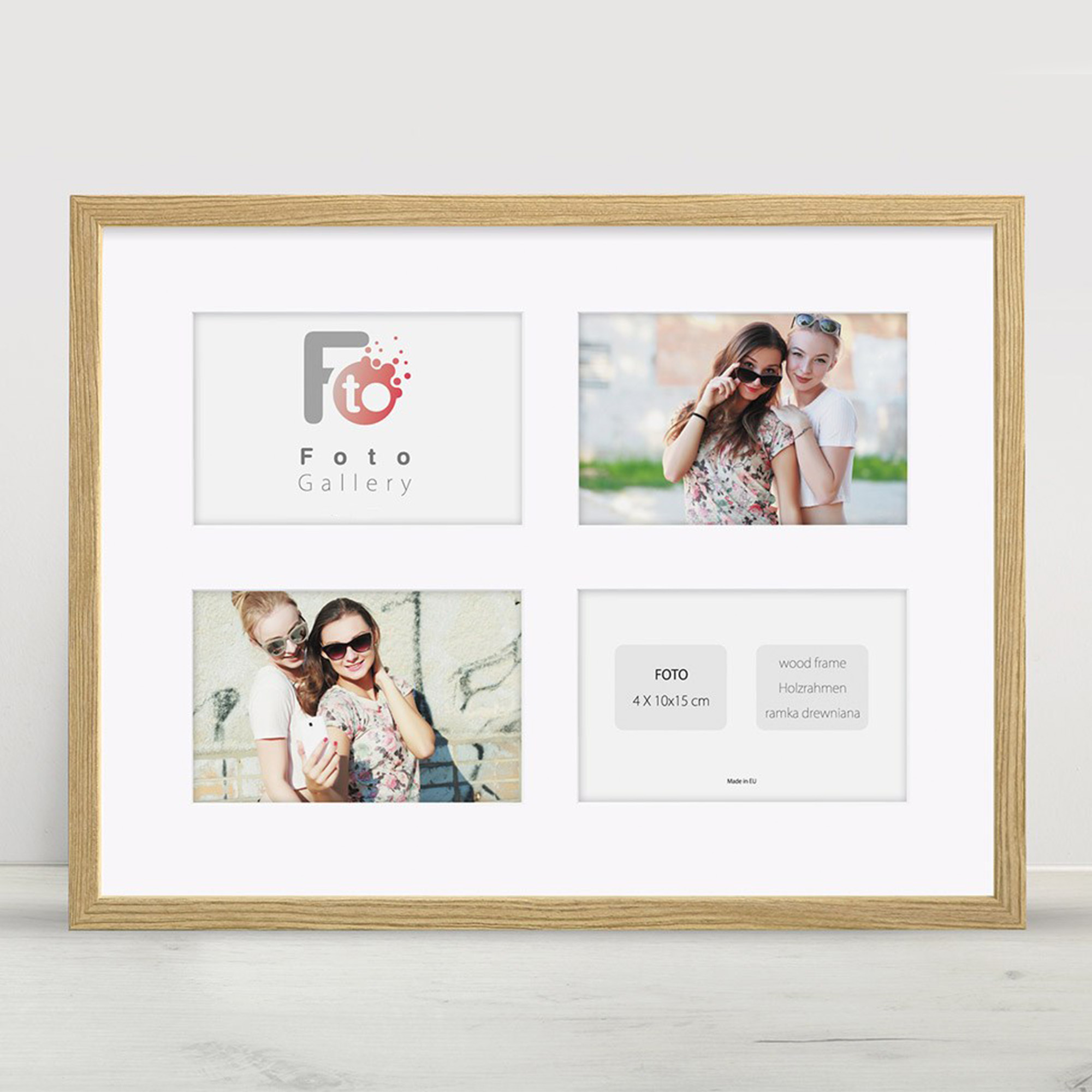 - Foto galeria Natural - drewniana ramka z passe partout do oprawy zdjęć 4 x 10x15 cm. Wymiar wewnętrzny kompozycji 30x40 A cm.