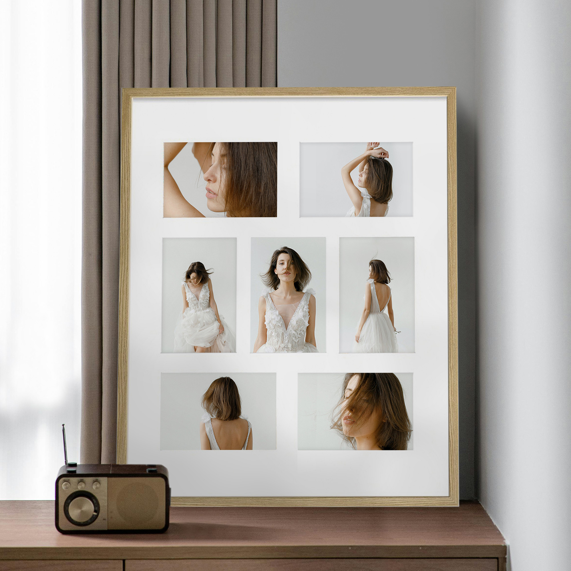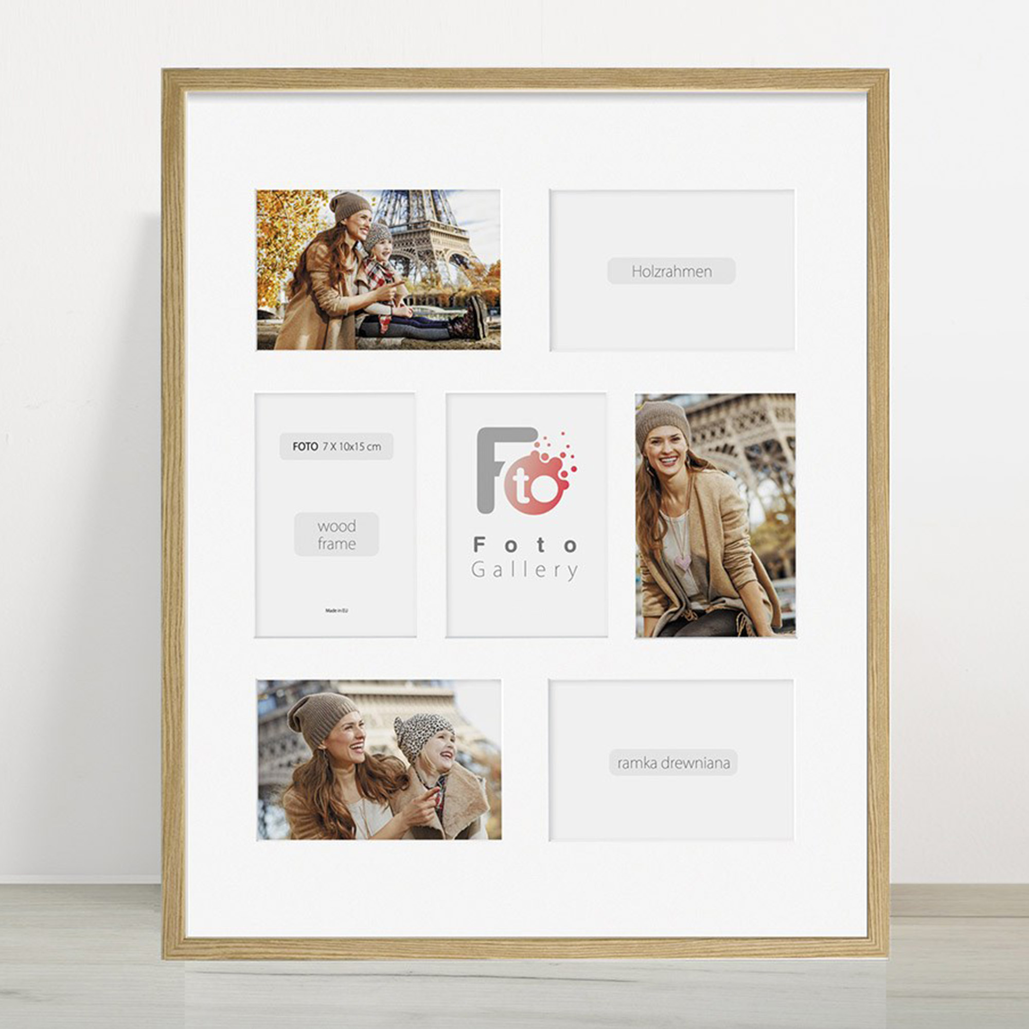 • Foto galeria Natural - drewniana ramka z passe partout do oprawy zdjęć 7 x 10x15cm. Wymiar wewnętrzny kompozycji 40x50 B cm.