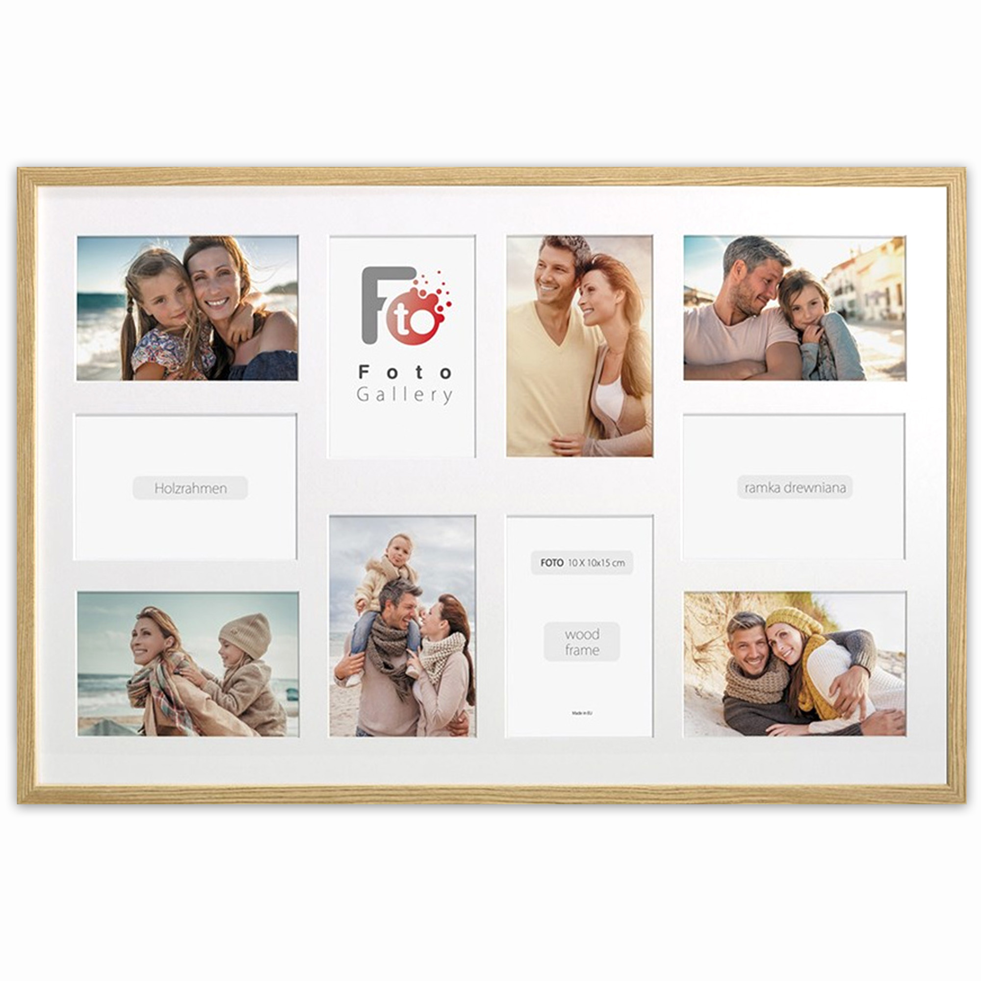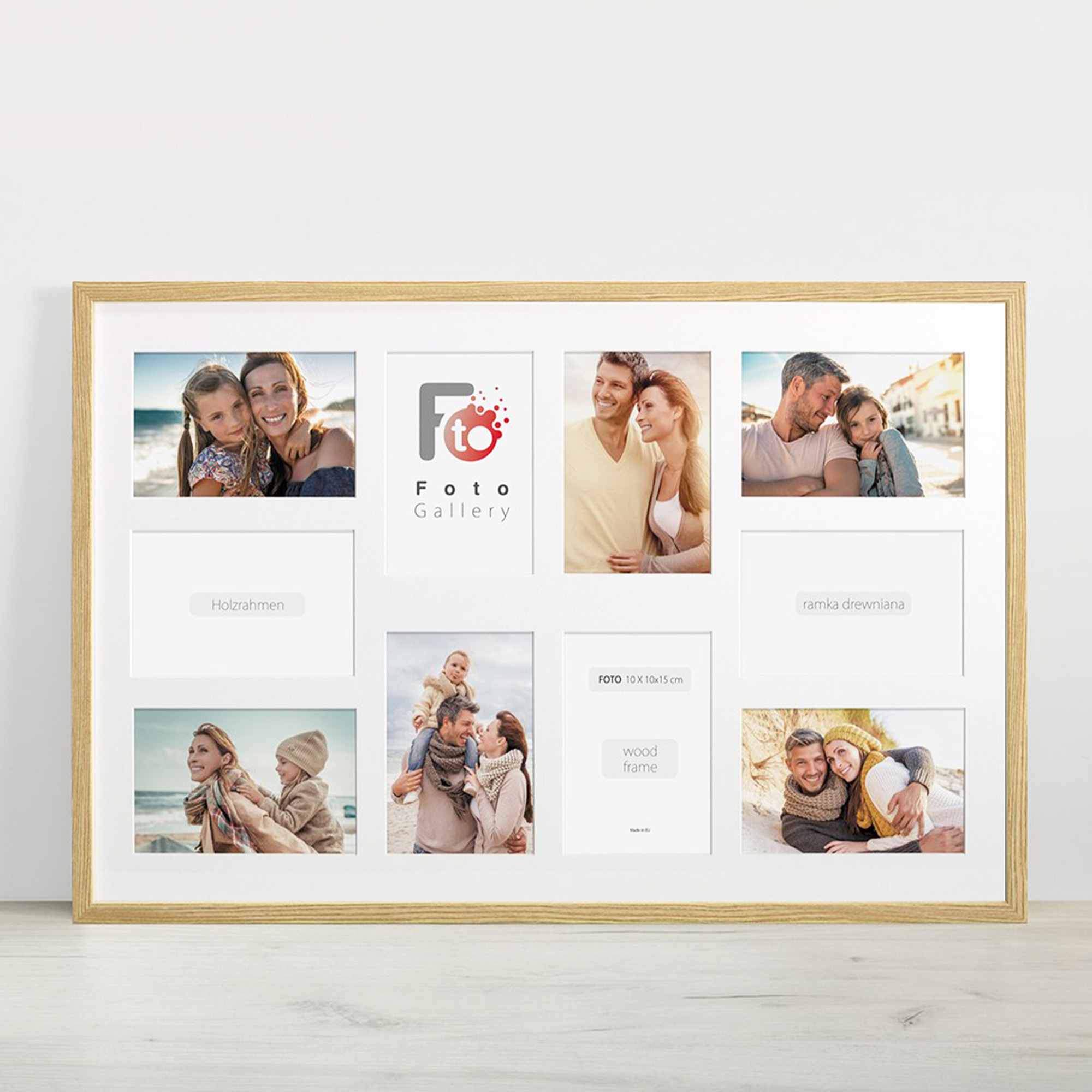 - Foto galeria Natural - drewniana ramka z passe partout do oprawy zdjęć 10x 10x15 cm. Wymiar wewnętrzny kompozycji 40x60 cm.
