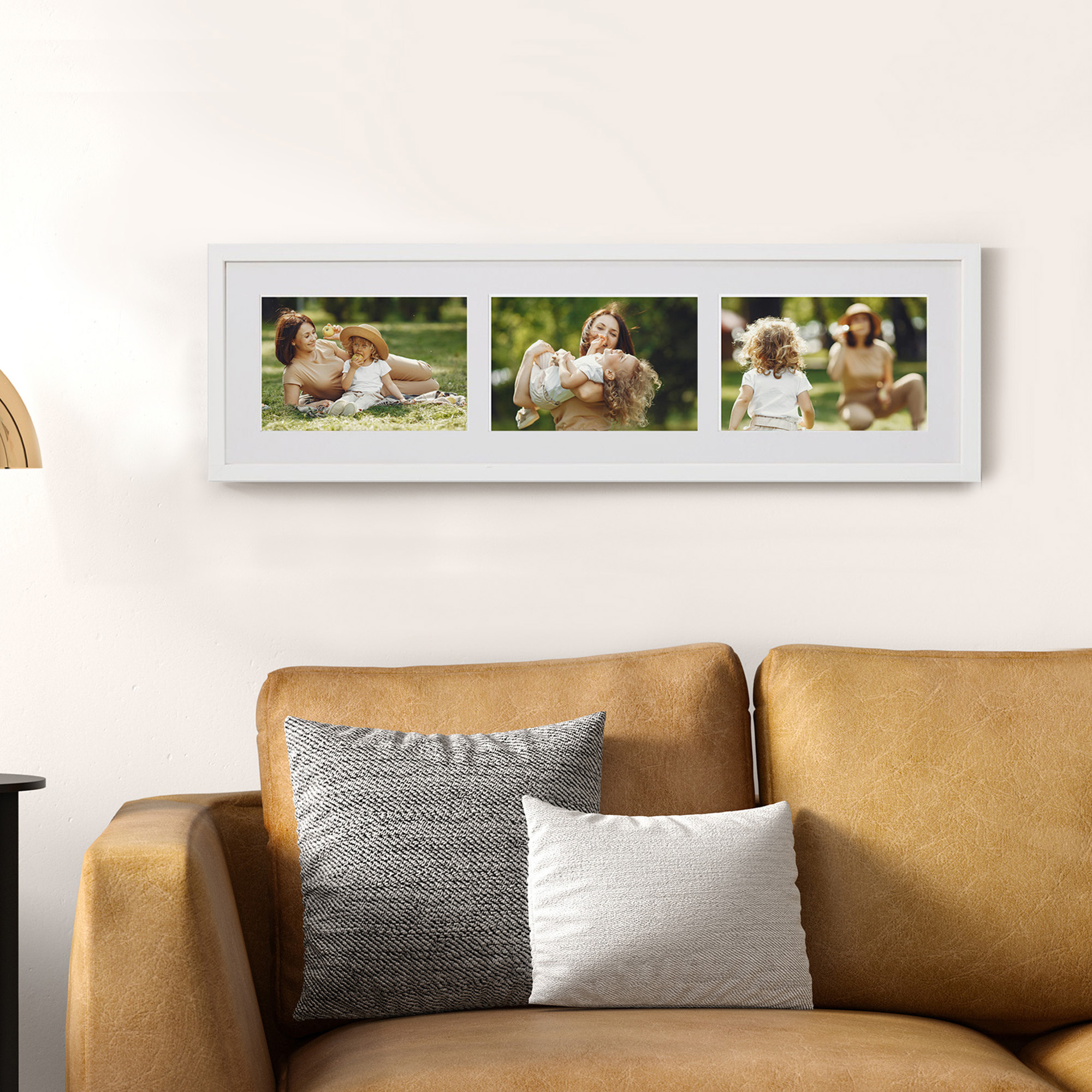 - Foto galeria White - drewniana ramka z passe partout do oprawy zdjęć 3 x 10x15 cm. Wymiar wewnętrzny kompozycji 15x52 cm.