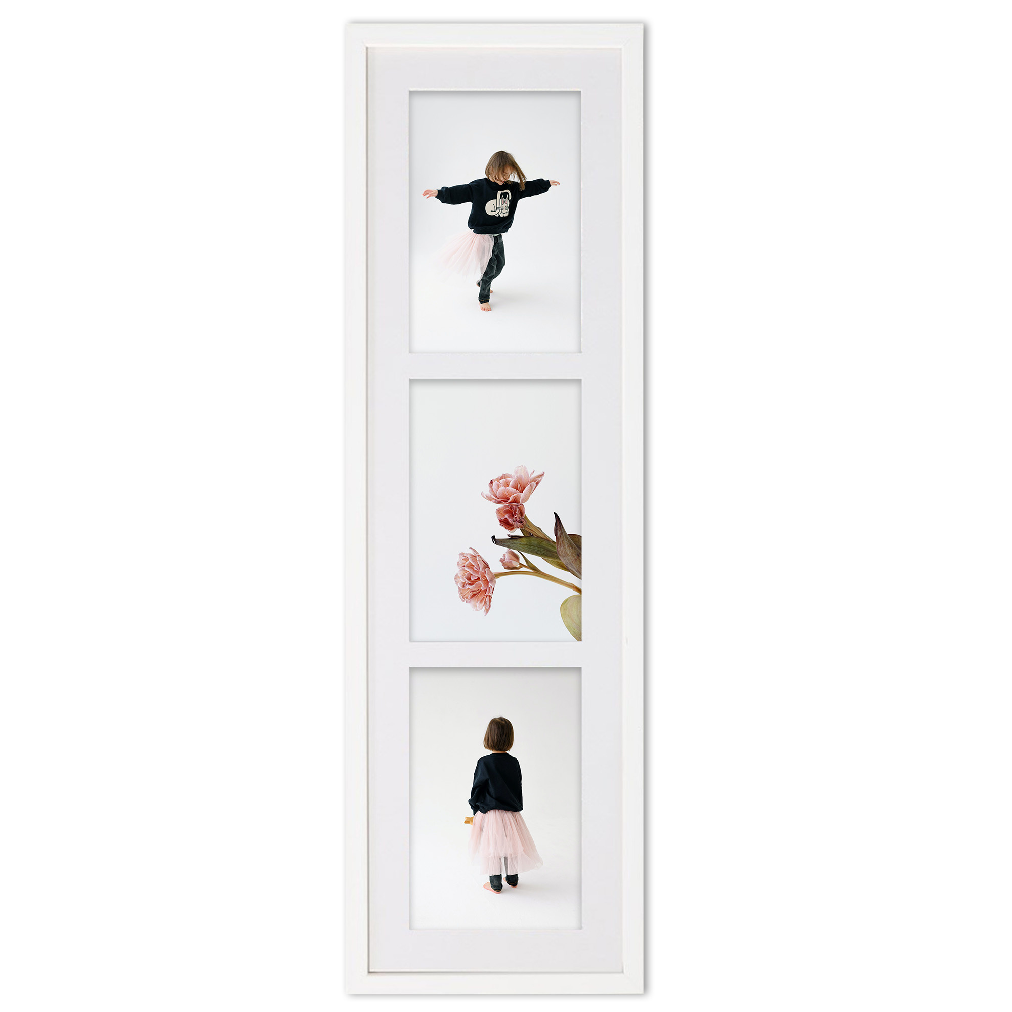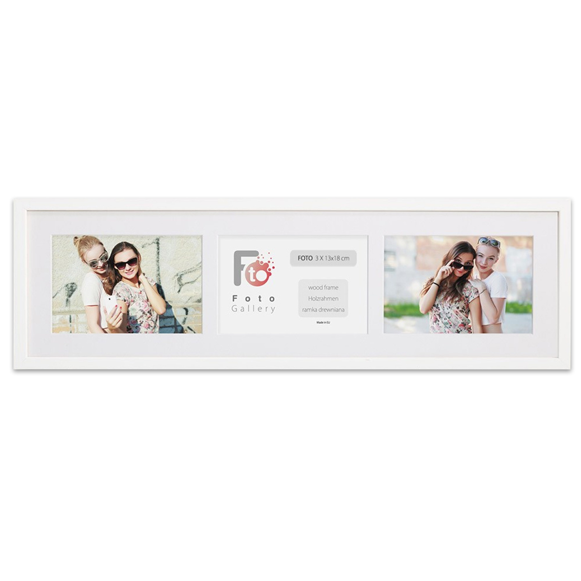 - Foto galeria White - drewniana ramka z passe partout do oprawy zdjęć 3 x 13x18cm. Wymiar wewnętrzny kompozycji 18x66 cm.