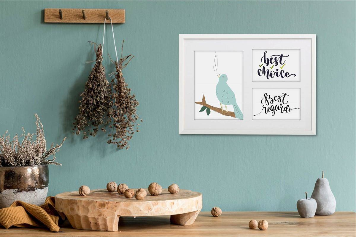 - Foto galeria White - drewniana ramka z passe partout do oprawy zdjęć 1 x 15x21, 2 x 10x15 cm. Wymiar wewnętrzny kompozycji 28x39 cm.