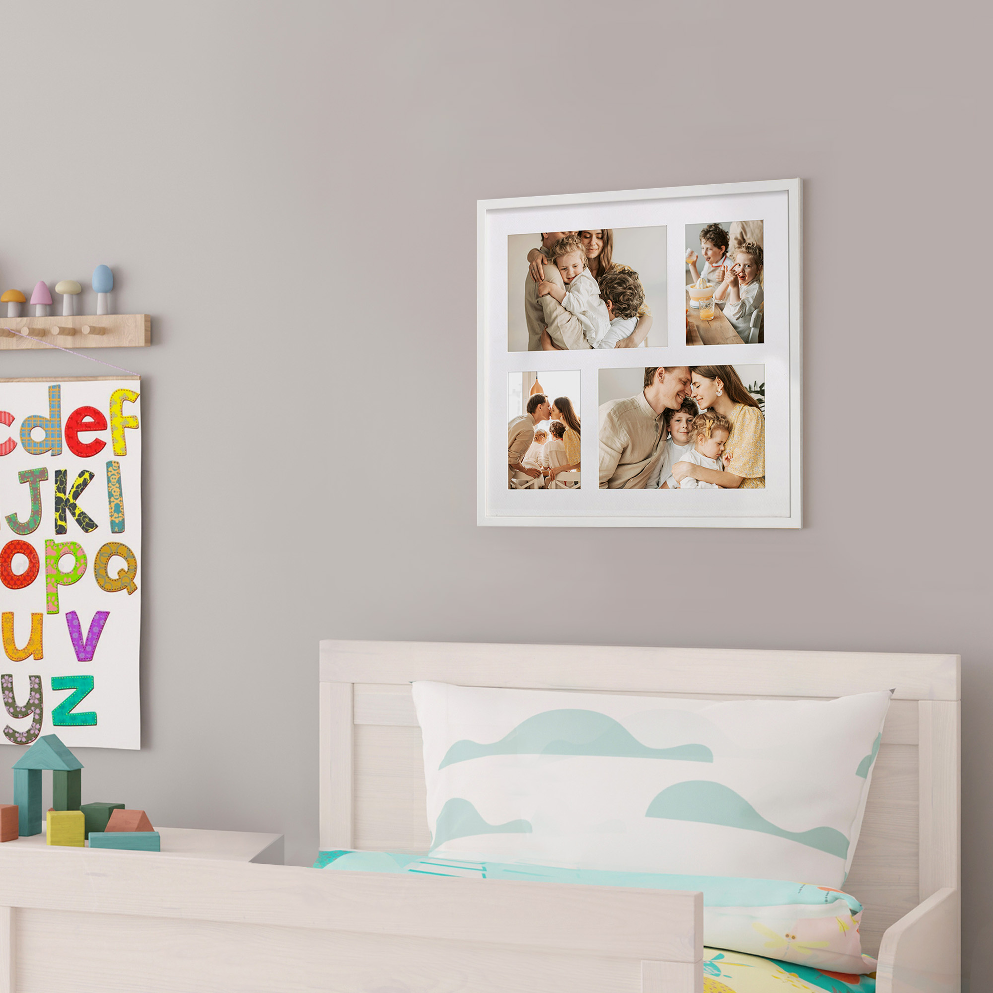 - Foto galeria White - drewniana ramka z passe partout do oprawy zdjęć 2 x 15x21cm, 2 x 10x15 cm. Wymiar wewnętrzny kompozycji 39x39 cm.