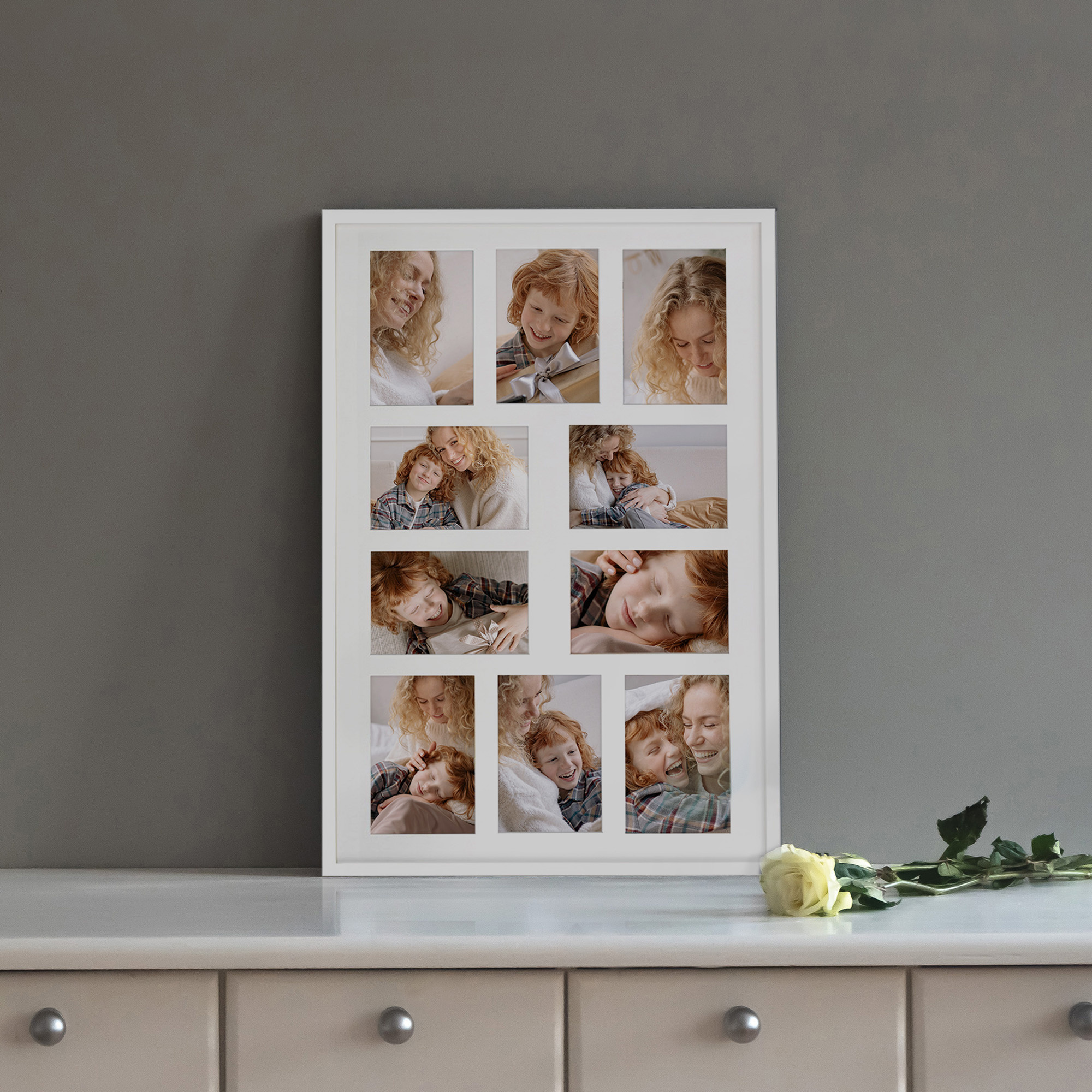 • Foto galeria White - drewniana ramka z passe partout do oprawy zdjęć 10x 10x15 cm. Wymiar wewnętrzny kompozycji 40x60 cm.