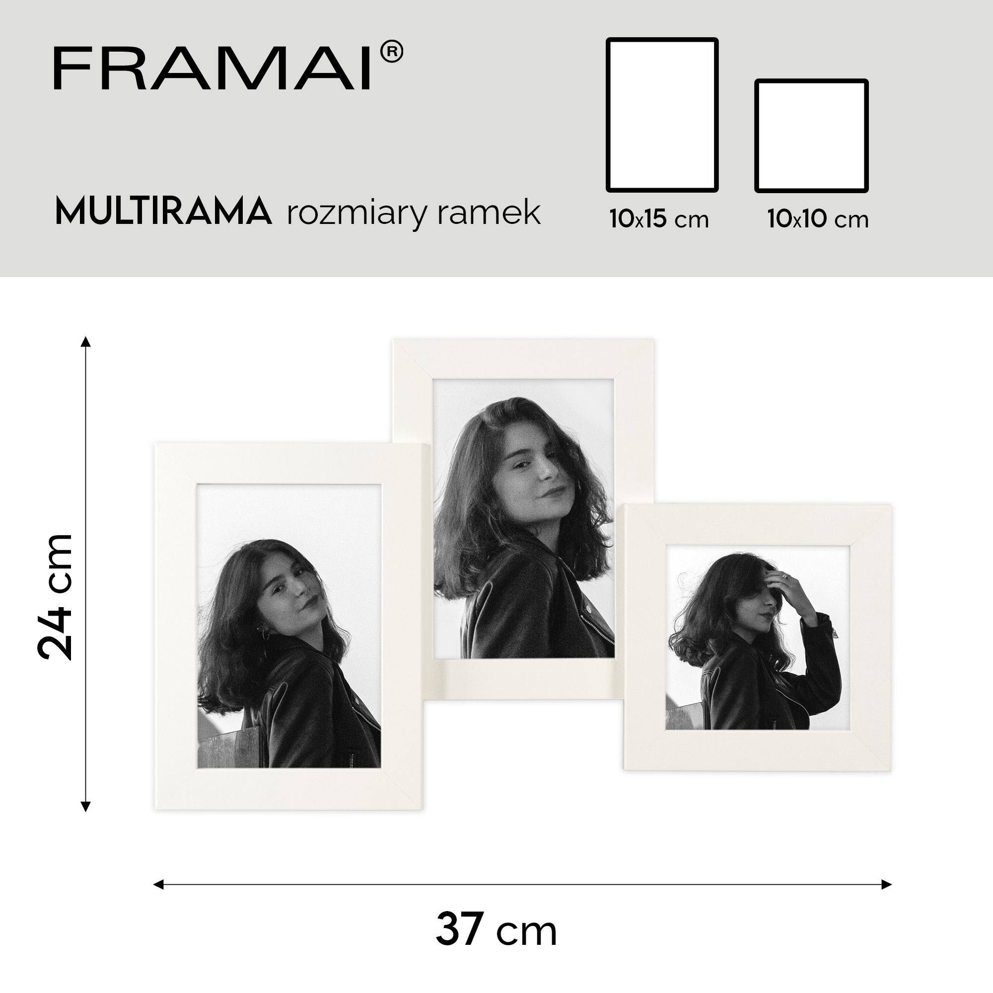 Biała Multirama HEN 1 to elegancka oprawa na 3 zdjęcia – o wymiarach 10x15 cm - 10x10 cm. Wykonana z MDF z prostym, matowym wykończeniem w klasycznym, białym kolorze, stanowi idealną propozycję do stworzenia stylowej galerii rodzinnej lub wyeksponowania wyjątkowych wspomnień z wakacji. Każda multirama jest wykonana w 100% z ekologicznego MDF, wyposażona w bezbarwne plexi organiczne oraz twarde plecy z płyty HDF, co zapewnia trwałość i stabilność konstrukcji.