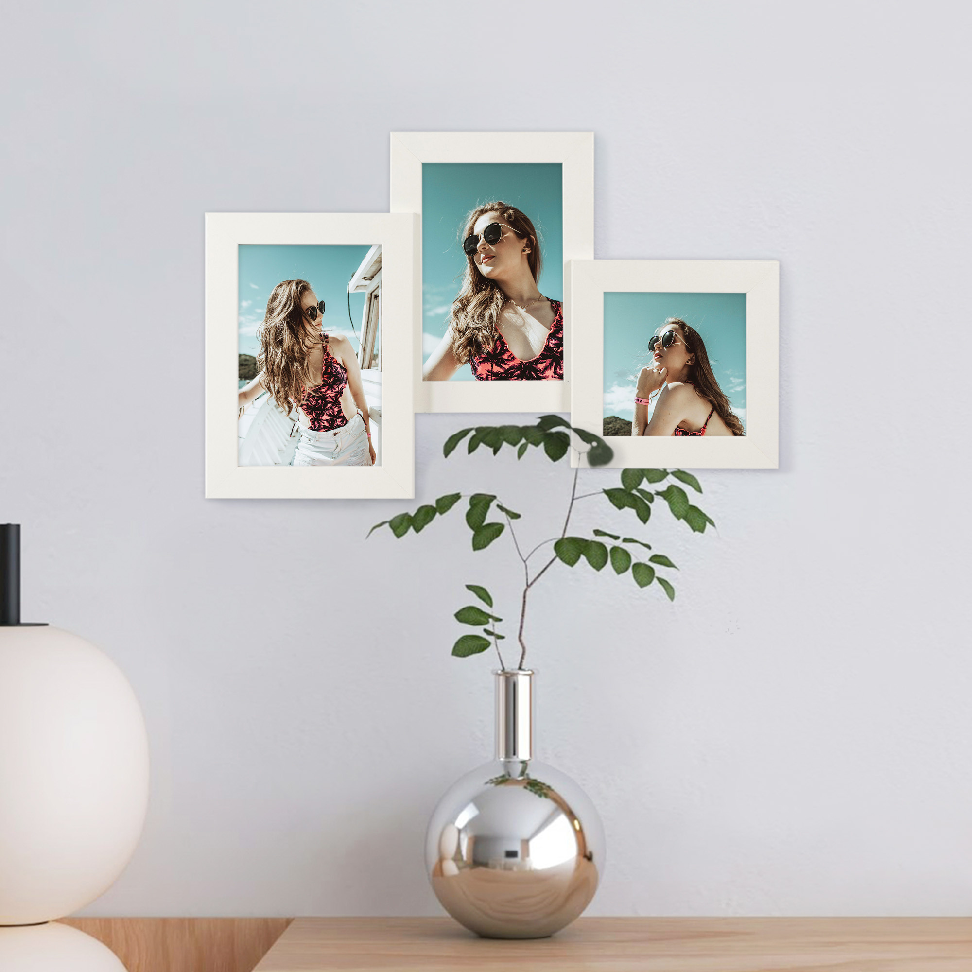 Biała Multirama HEN 1 24x37 cm z ekologicznego MDF z nietłukącą się plexi – ramka na 3 zdjęcia 10x15 cm, 10x10 cm.