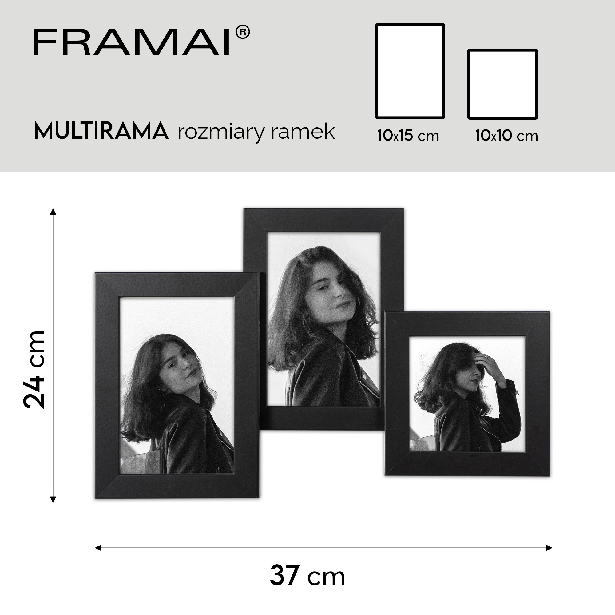 Czarna Multirama HEN 2 to elegancka oprawa na 3 zdjęcia – o wymiarach 10x15 cm - 10x10 cm. Wykonana z MDF z prostym, matowym wykończeniem w klasycznym, czarnym kolorze, stanowi idealną propozycję do stworzenia stylowej galerii rodzinnej lub wyeksponowania wyjątkowych wspomnień z wakacji. Każda multirama jest wykonana w 100% z ekologicznego MDF, wyposażona w bezbarwne plexi organiczne oraz twarde plecy z płyty HDF, co zapewnia trwałość i stabilność konstrukcji.
