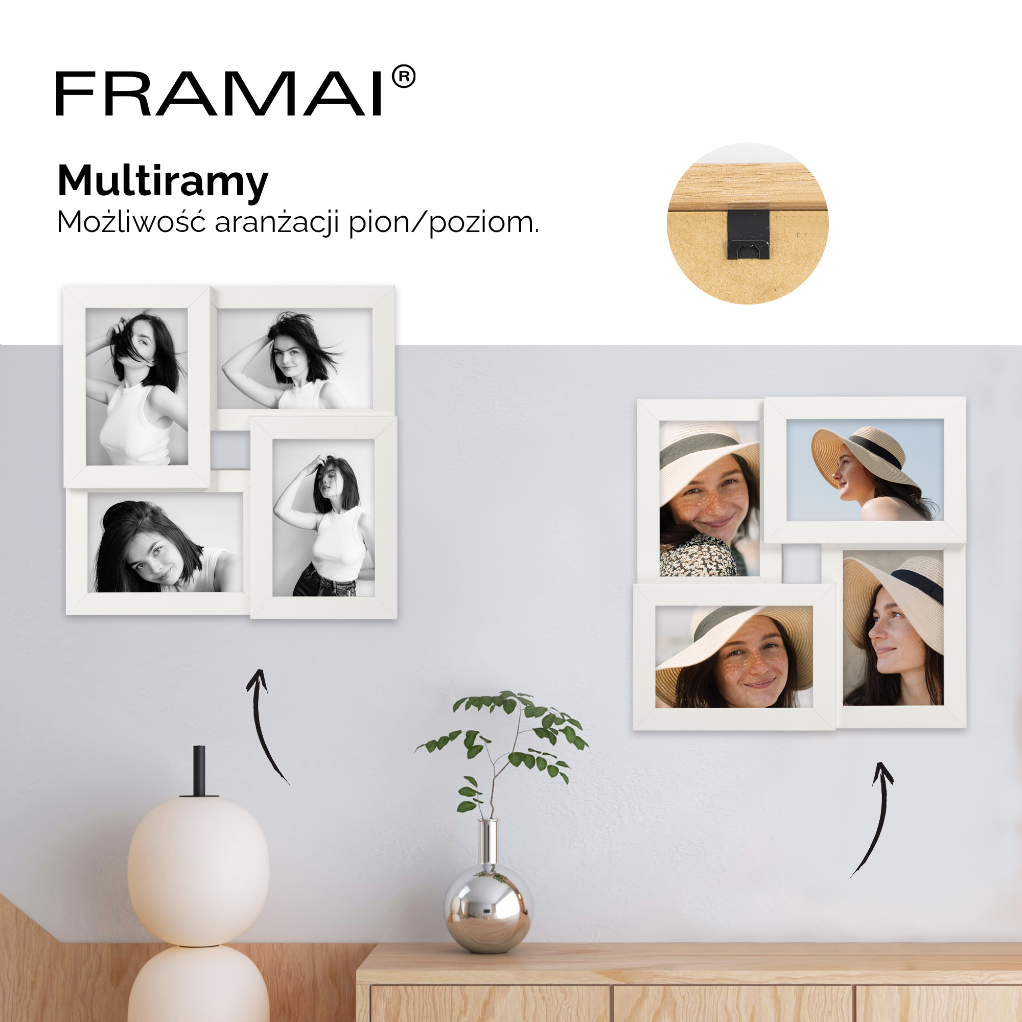 Konstrukcja multiramy wyróżnia się precyzyjnie wykonanymi narożnikami oraz trwałym montażem na stalowe wkręty, co gwarantuje solidność na długie lata. Dzięki elastycznym blaszkowym zapięciom, wymiana zdjęć jest prosta i szybka, co może sprawić radość całej rodzinie. Multirama posiada uniwersalną zawieszkę, dzięki której można ją wieszać zarówno pionowo, jak i poziomo, dopasowując do każdej aranżacji ściennej. Każda rama jest starannie zapakowana w tekturowe opakowanie oraz dodatkową folię ochronną, aby zapewnić bezpieczny transport i odbiór w nienaruszonym stanie.