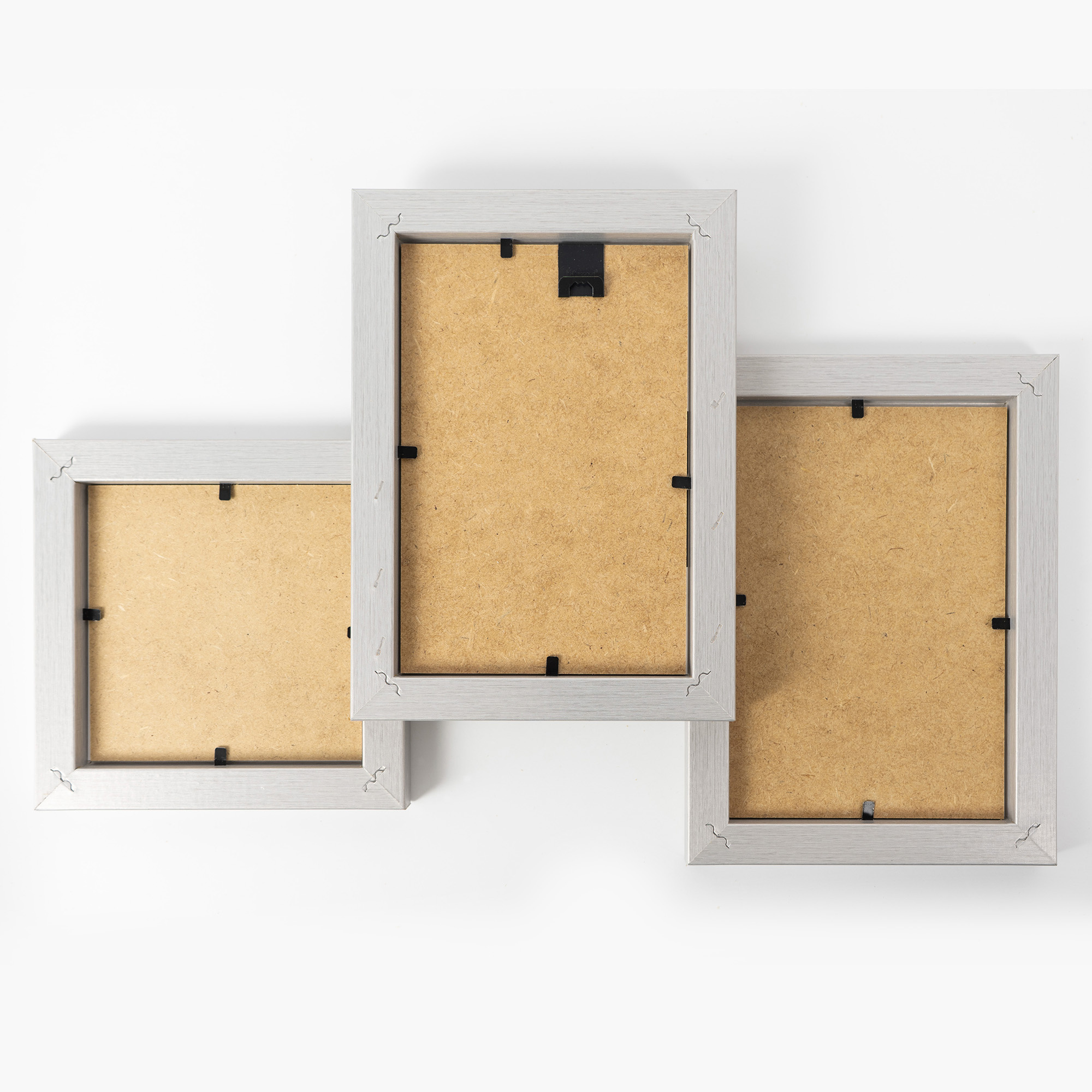 Srebrne ramki w multiramie mają estetycznie wykończone narożniki i są trwale skręcone stalowymi wkrętami. Dzięki elastycznym blaszkom, wymiana fotografii jest szybka i łatwa – to świetna zabawa dla całej rodziny. Praktyczna zawieszka pozwala na zawieszenie multiramy w pionie lub poziomie, dopasowując ją do każdej aranżacji wnętrza. Każda ramka jest indywidualnie pakowana w ochronne tekturowe opakowanie oraz folię, co gwarantuje jej bezpieczny transport i idealny stan przy odbiorze.