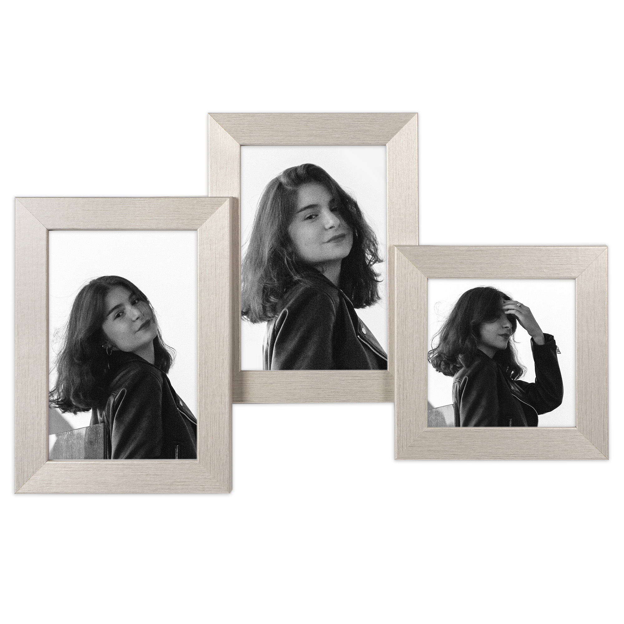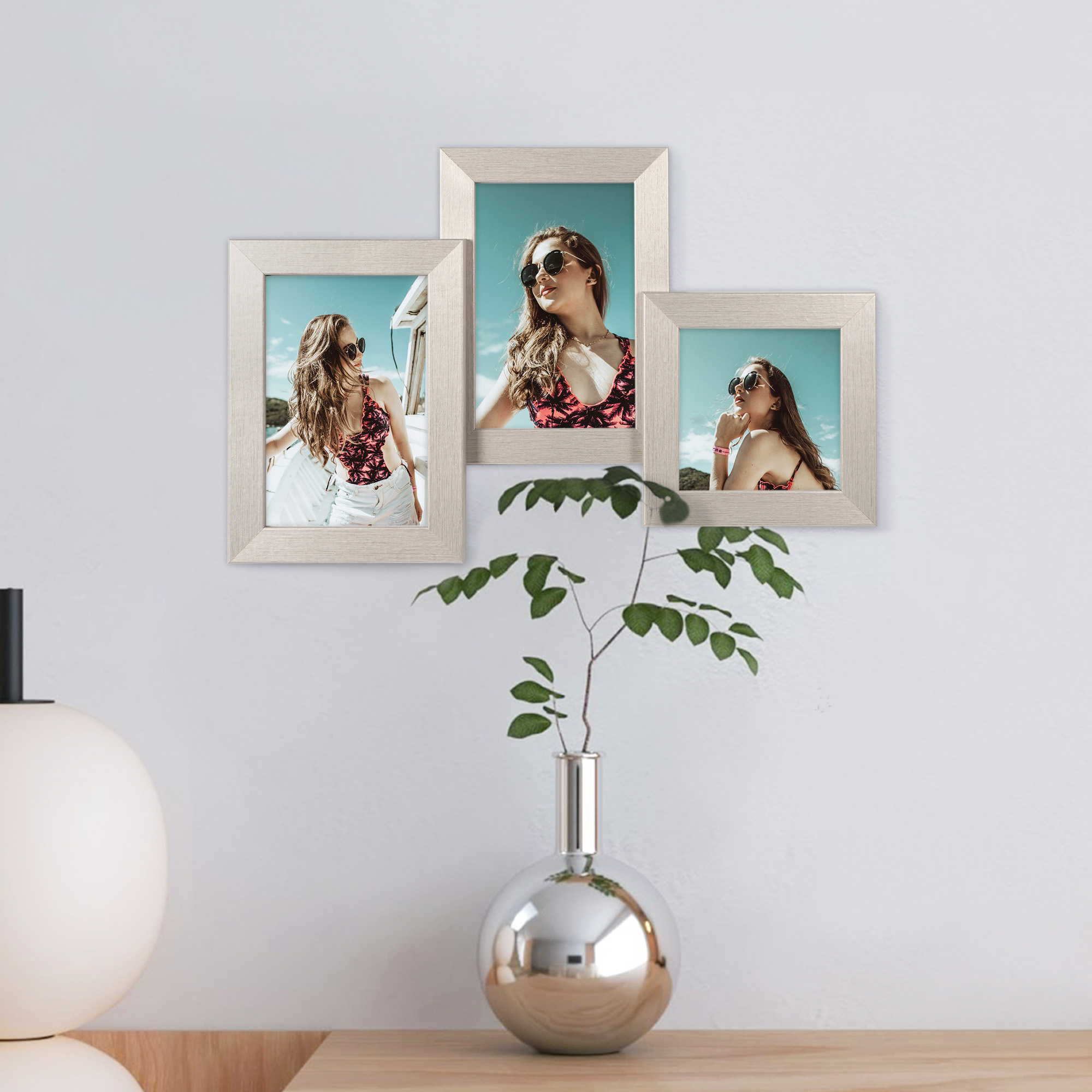 Srebrna Multirama HEN S 24x37 cm z ekologicznego MDF z nietłukącą się plexi – ramka na 3 zdjęcia 10x15 cm, 10x10 cm.