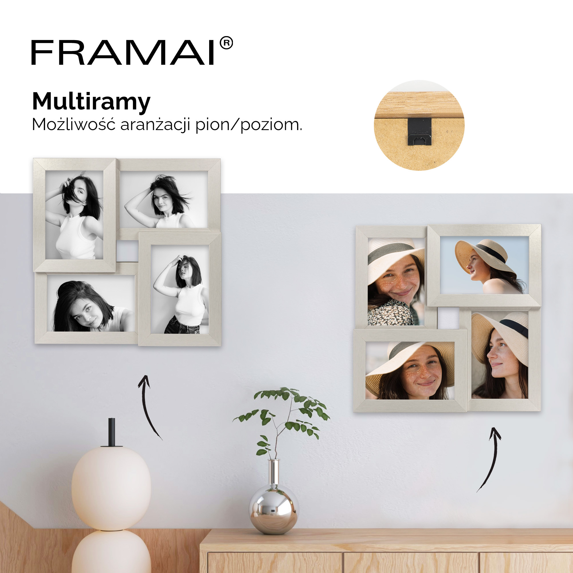 Konstrukcja multiramy wyróżnia się precyzyjnie wykonanymi narożnikami oraz trwałym montażem na stalowe wkręty, co gwarantuje solidność na długie lata. Dzięki elastycznym blaszkowym zapięciom, wymiana zdjęć jest prosta i szybka, co może sprawić radość całej rodzinie. Multirama posiada uniwersalną zawieszkę, dzięki której można ją wieszać zarówno pionowo, jak i poziomo, dopasowując do każdej aranżacji ściennej. Każda rama jest starannie zapakowana w tekturowe opakowanie oraz dodatkową folię ochronną, aby zapewnić bezpieczny transport i odbiór w nienaruszonym stanie.