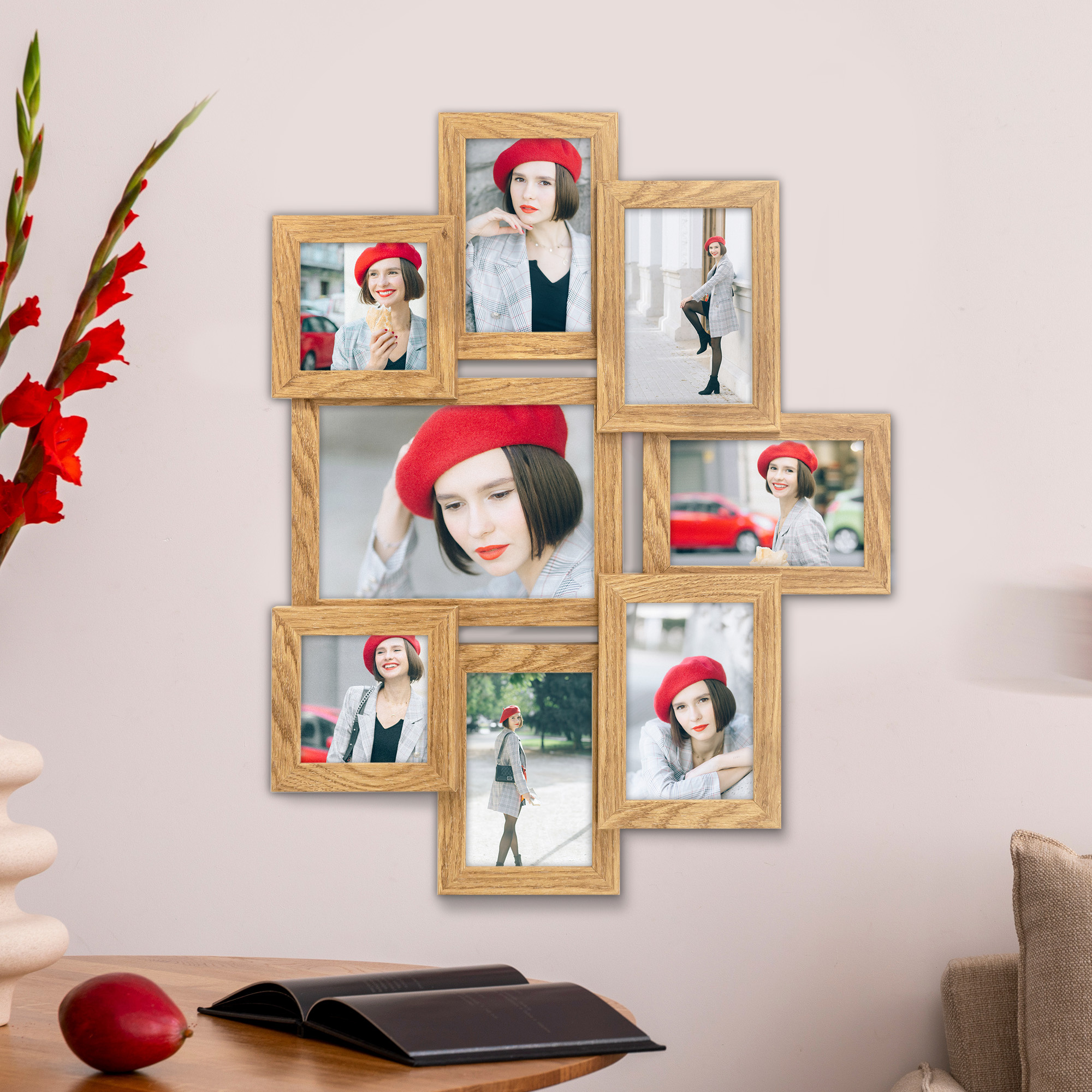 Multirama na 8 zdjęć MULTI HEN 01 ramka na zdjęcia w kolorze dębowym