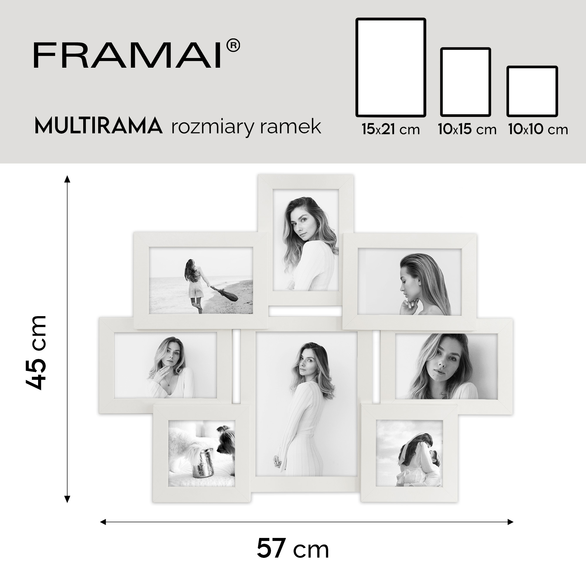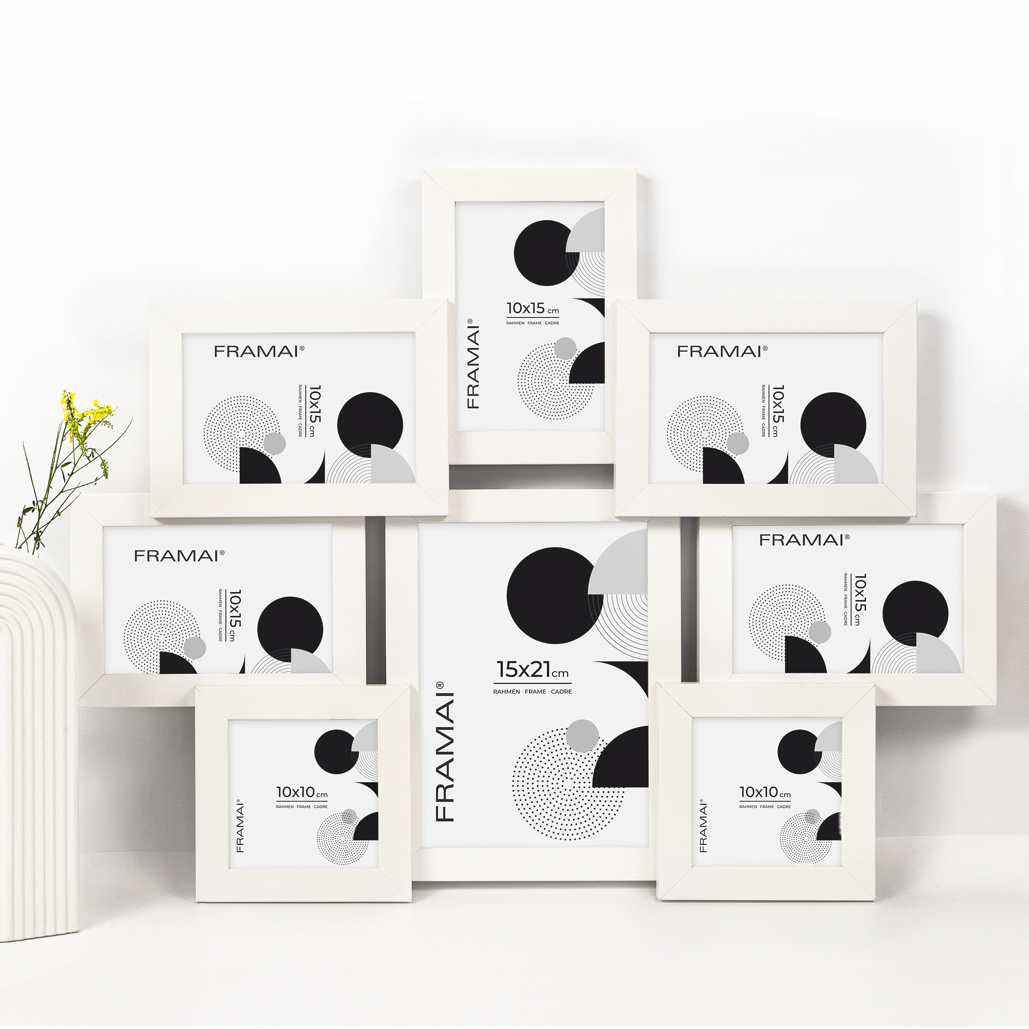 Multirama HEN 1 to stylowa ramka na 8 zdjęć, idealna do stworzenia eleganckiej domowej galerii. Pomieści pięć zdjęć o wymiarach 10x15 cm, dwa zdjęcia 10x10 cm i jedno zdjęcie 15x21 cm, a jej matowe wykończenie w eleganckim białym kolorze sprawdzi się w każdym wnętrzu. Wykonana z wysokiej jakości ekologicznego MDF, z nietłukącą się plexi oraz solidnym tyłem z płyty HDF, multirama ta zapewnia estetykę, trwałość i stabilność.
