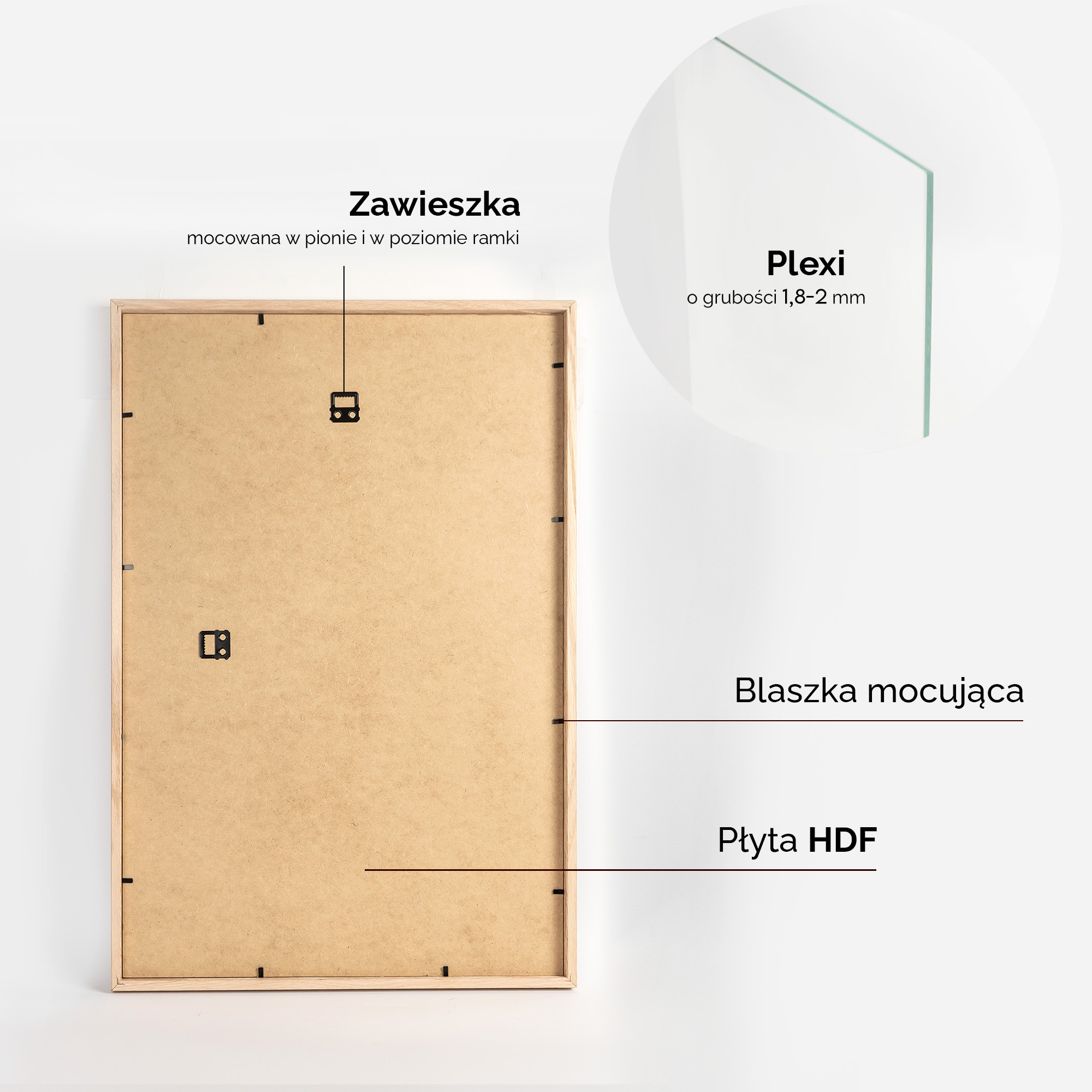 Pakiet 3 sztuk ramek z drewna dębowego OAK 40x60 cm to idealne rozwiązanie dla osób poszukujących eleganckiego i funkcjonalnego sposobu na wyeksponowanie swoich zdjęć, plakatów czy dyplomów. Ramki wykonane są w 100% z litego drewna dębowego, charakteryzującego się naturalnym pięknem oraz trwałością. Dzięki matowemu wykończeniu, prezentują się stylowo i nowocześnie w każdym wnętrzu. Każda ramka posiada profil o przekroju 13x20 mm, co zapewnia solidność oraz estetyczny wygląd. Przednia część oprawy wykonana jest z plexi, które jest lżejsze i bezpieczniejsze od szkła, a jednocześnie zapewnia doskonałą przejrzystość. Tył ramki wykonany jest z płyty HDF o grubości 3 mm, co gwarantuje stabilność i długotrwałe użytkowanie. Ramki są przystosowane do ekspozycji zarówno w pionie, jak i poziomie, co daje możliwość dostosowania ich do indywidualnych potrzeb. Dodatkowo, elastyczne blaszki mocujące umożliwiają komfortowe otwieranie i wymianę zdjęć, a brak stopki sprawia, że ramki idealnie nadają się do powieszenia na ścianie. Każdy zestaw rafinowanych ramek OAK to nie tylko funkcjonalny produkt, ale również piękna dekoracja, która wzbogaci każde wnętrze. Gwarantujemy najwyższą jakość wykonania – wszystkie nasze ramki to produkt polski, o klasie pierwszej.