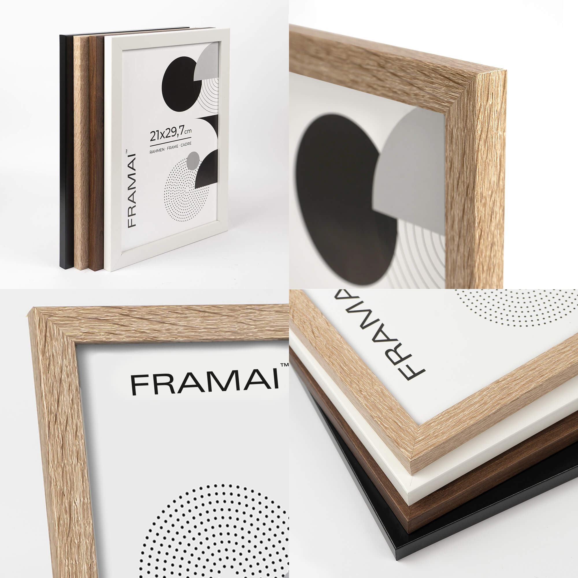 Pakiet 5 szt. ramek w kolorze bielonego dębu HEN 0 21x29,7 cm