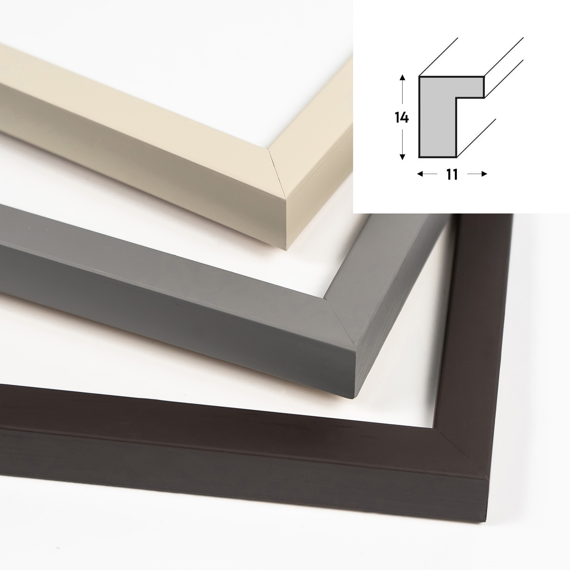 - Ramka wykonana z drewna o profilu 11 mm x 14 mm (szerokość, wysokość)