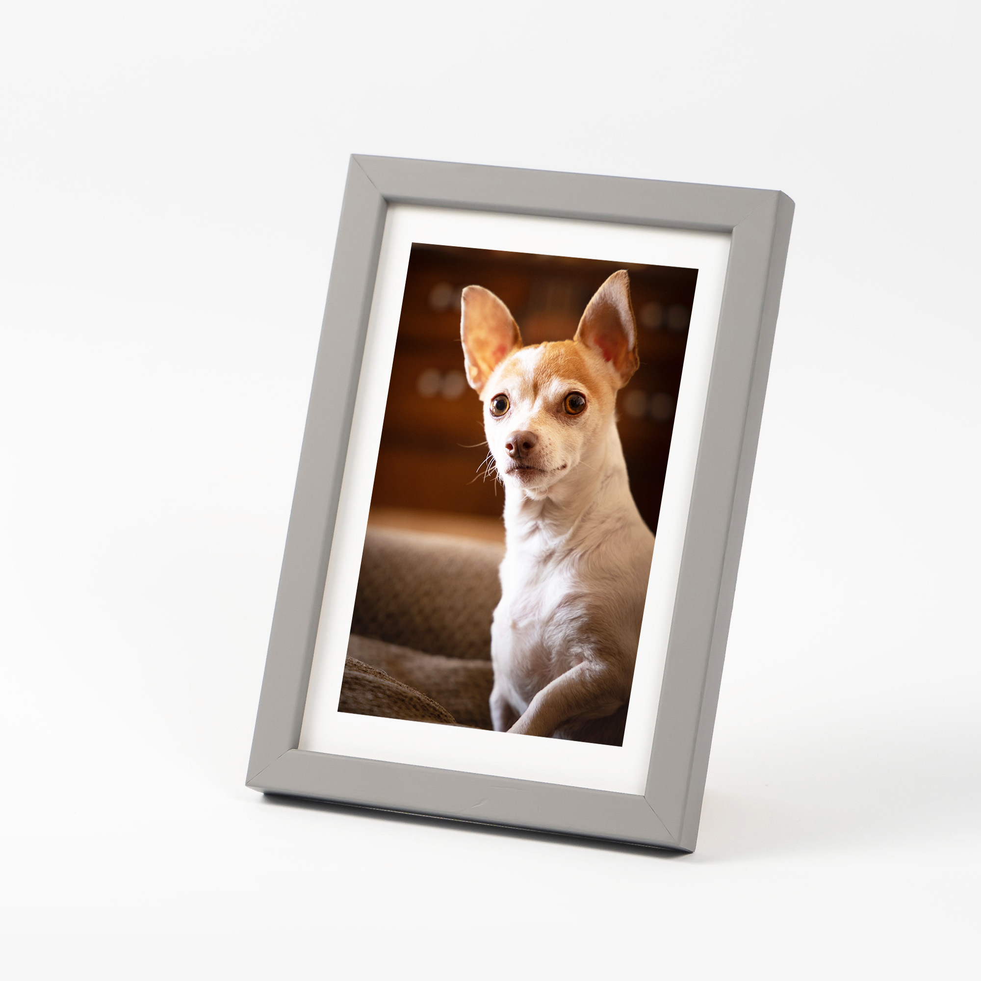 Nowoczesne ramki PINIA 05 w kolorze popielatym z rozmiarem wewnętrznym 10x15 cm na zdjęcie, grafikę lub dyplom. Zostały wykonane w 100% z najwyższej jakości drewna sosnowego ze starannością i spasowaniem. Delikatna, ale widoczna rama o profilu 11 mm x 14 mm budzi zainteresowanie i idealnie eksponuje zawartość.