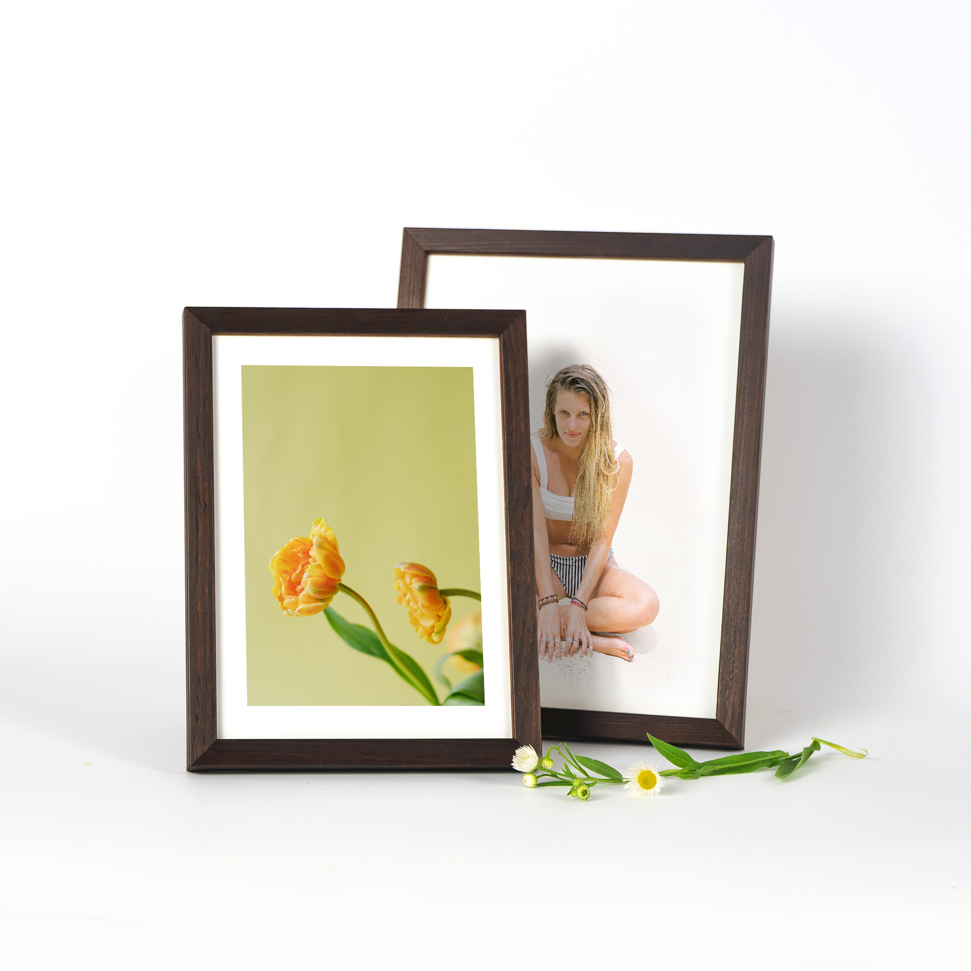 Nowoczesne ramki PINIA 4 w kolorze ciemnego brązu z rozmiarem wewnętrznym 13x18 cm na zdjęcie, grafikę lub dyplom. Zostały wykonane w 100% z najwyższej jakości drewna sosnowego ze starannością i spasowaniem. Delikatna, ale widoczna rama o profilu 11 mm x 14 mm budzi zainteresowanie i idealnie eksponuje zawartość.