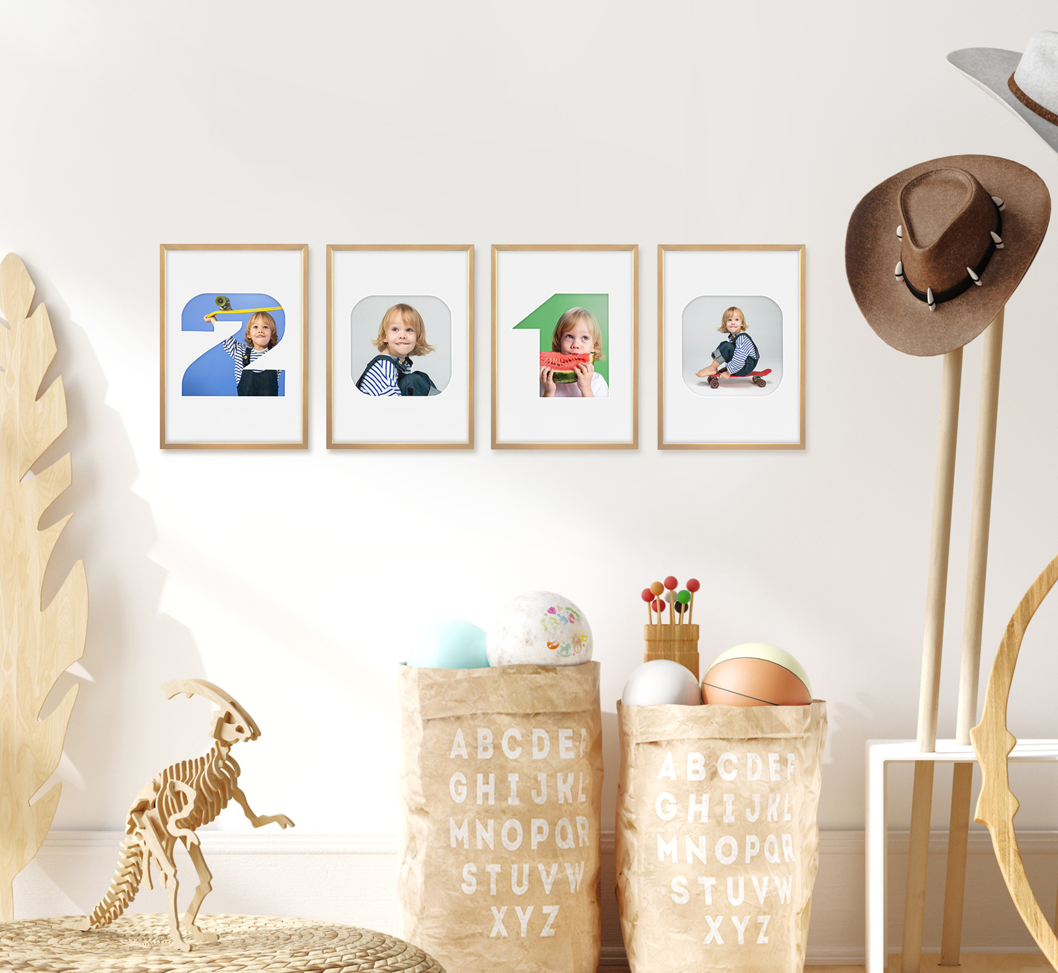 Passe partout można umieścić w białych, czarnych lub kolorowych ramkach tworząc z nich mini galerię na ścianie. Umieszczenie kilku ramek obok siebie pozwoli na ciekawe zaprezentowanie np. daty urodzenia dziecka i świetnie pasuje do dziecięcego pokoju. Jest to dekoracja, które sprawdzi się również w przestrzeniach biurowych, salonach kosmetycznych lub gabinetach lekarskich.