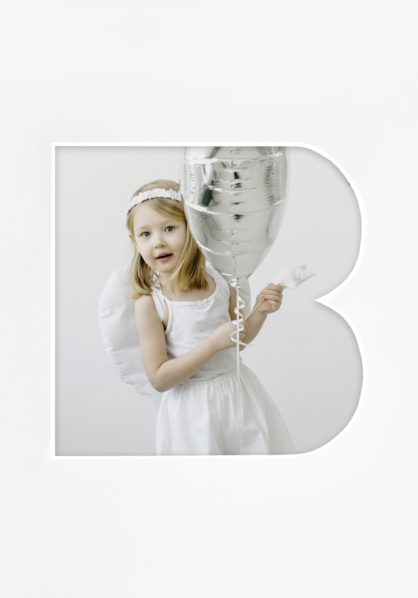Przygotowaliśmy specjalną serię passe partout ABC - standardowe kształty zostały zamienione na spersonalizowane litery alfabetu od A do Z. Białe passe partout pasuje do ramek w rozmiarze 21x30 cm.
