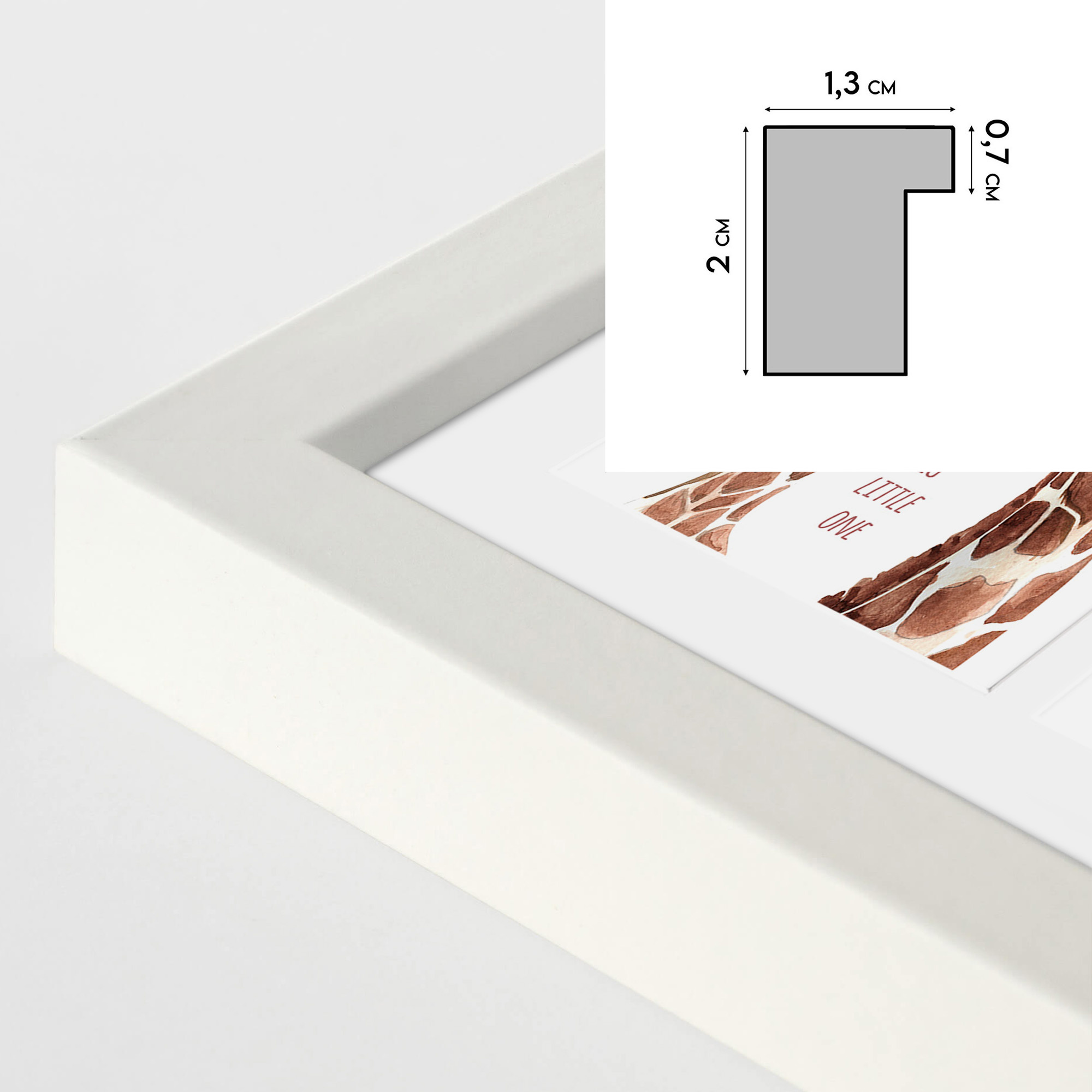 Uroczy motyw dwóch przytulających się żyraf nadaje ramce ciepły, dziecięcy charakter. To nie tylko dekoracja – to także symbol miłości, bliskości i troski. Idealnie pasuje do pokoiku dziecka, w stylu skandynawskim, boho lub klasycznym.