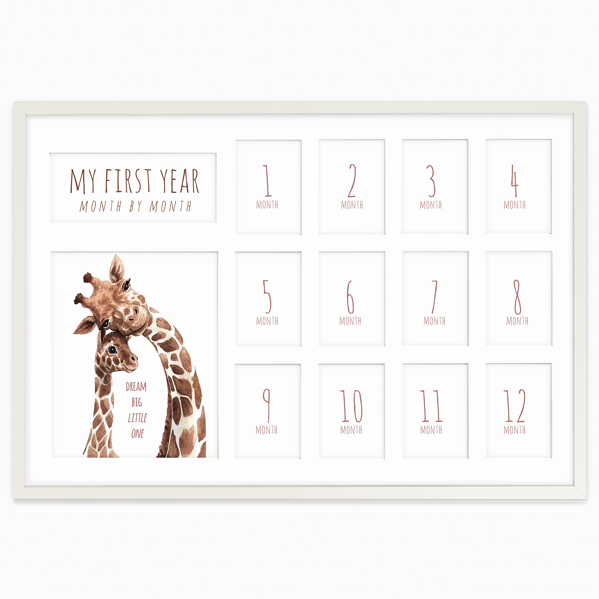 Zatrzymaj wspomnienia z pierwszego roku życia Twojego maluszka miesiąc po miesiącu.