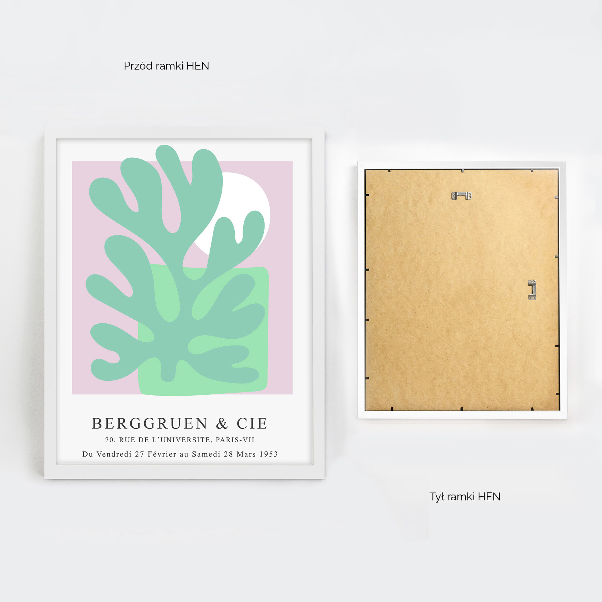 Charakterystyka białej ramki HEN 1 w rozmiarze 40x50 cm::